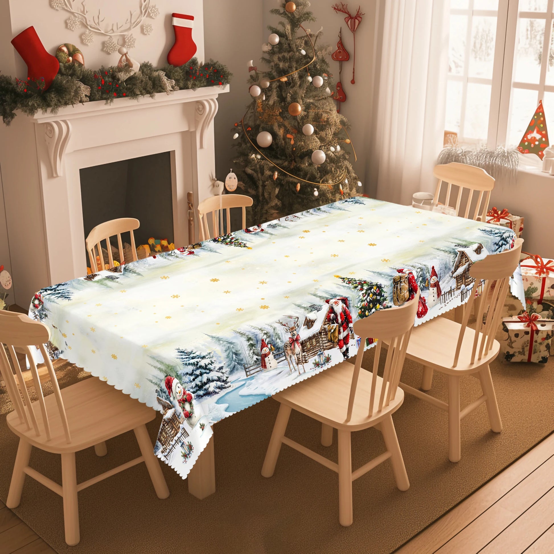 1 Piece of Christmas Round and Rectangular Tablecloths, Available in Various Sizes, Snow Christmas Gift Pattern Party Decoration Tablecloths, Christmas Party Garden Tablecloths for Christmas Home Kitchen, Restaurant Terrace I