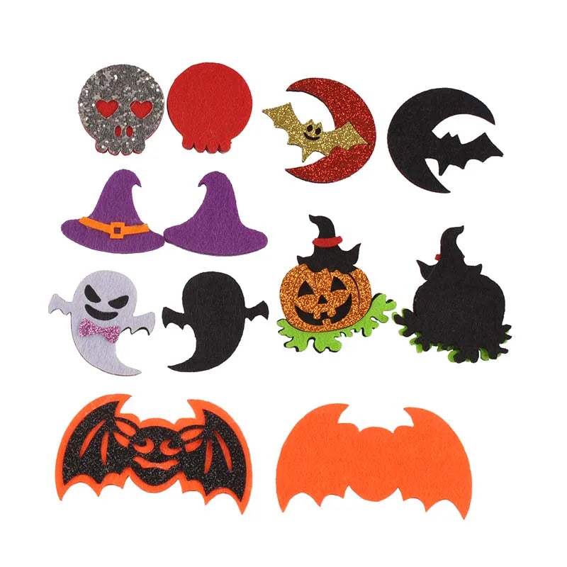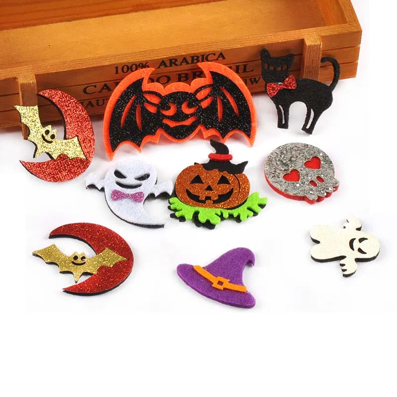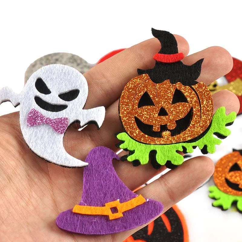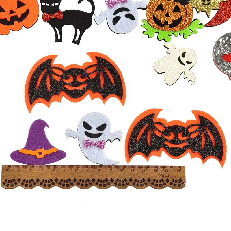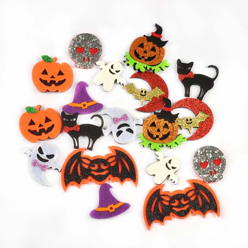 10Pcs 4-9cm Cartoon Ghost/Bat/Spider/Pumpkin Felt Fabric Halloween Patches Appliques For Sewing Supplies Clothes DIY Decor C4133