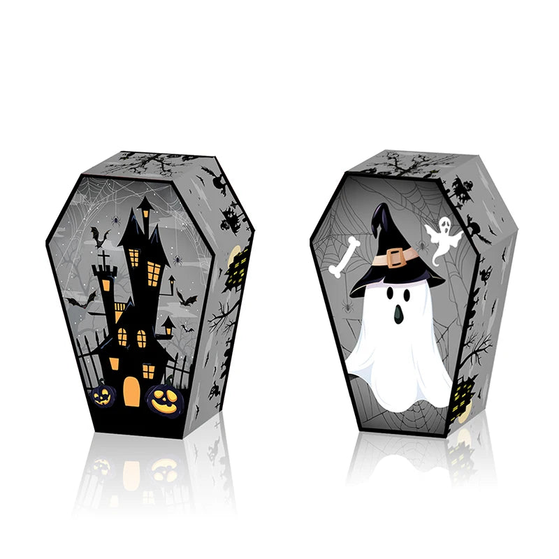 12pcs Halloween Coffin Shape Snack Box Skull Bat Ghost Goodie Boxes for Happy Halloween Party Decor Supply Trick or Treat Box
