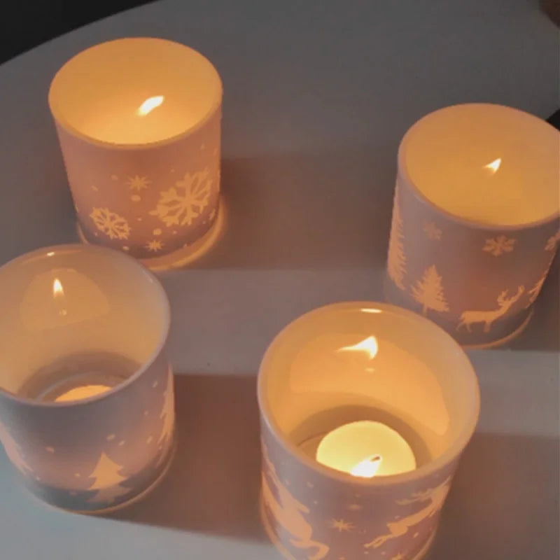 1Mini Christmas Tree Elk Snowflake Candle Holder Glass Small Candle Cup Christmas Gift Home Store Decoration Ornament