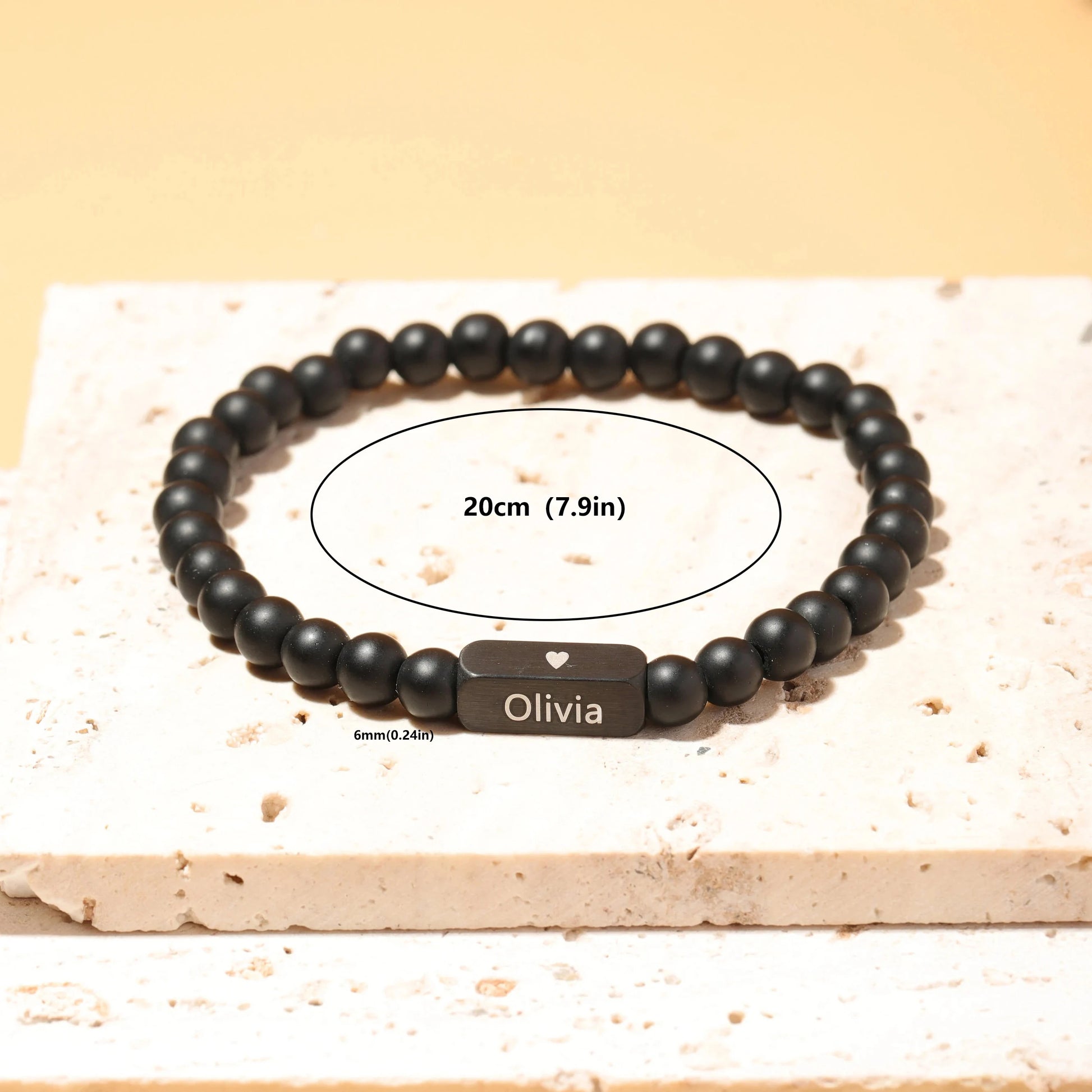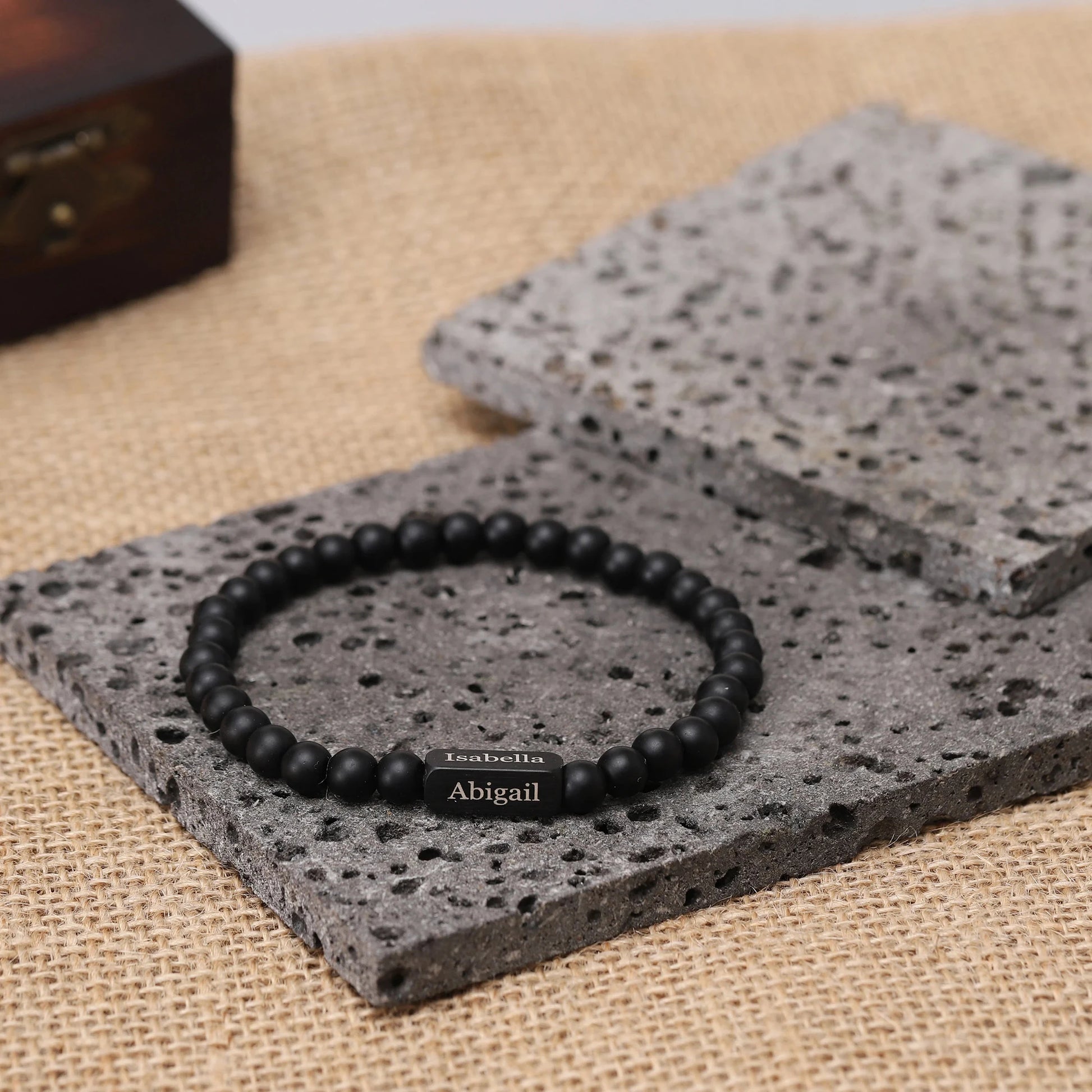 1pc, Personalized Men's Bracelet With Names Ideal Christmas Gift For Husband Grandfather, Mens Beads Bracelet
