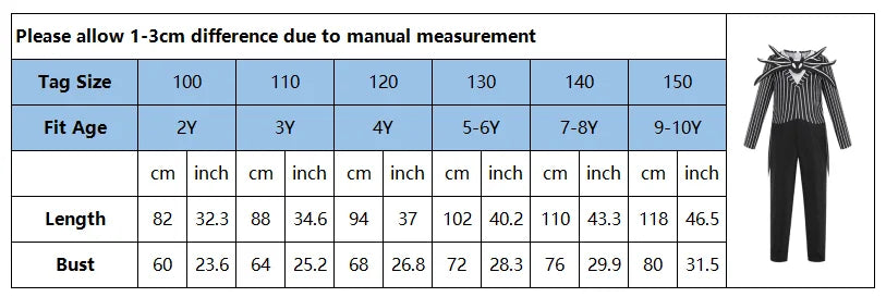 2025 Boys Christmas Eve Nightmare Before Scary Skeleton Jack Cosplay Striped Halloween Cosplay Costume