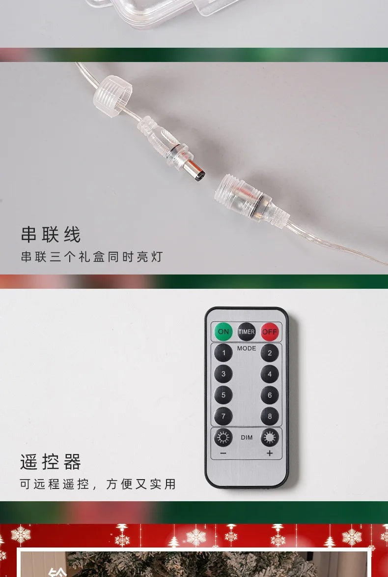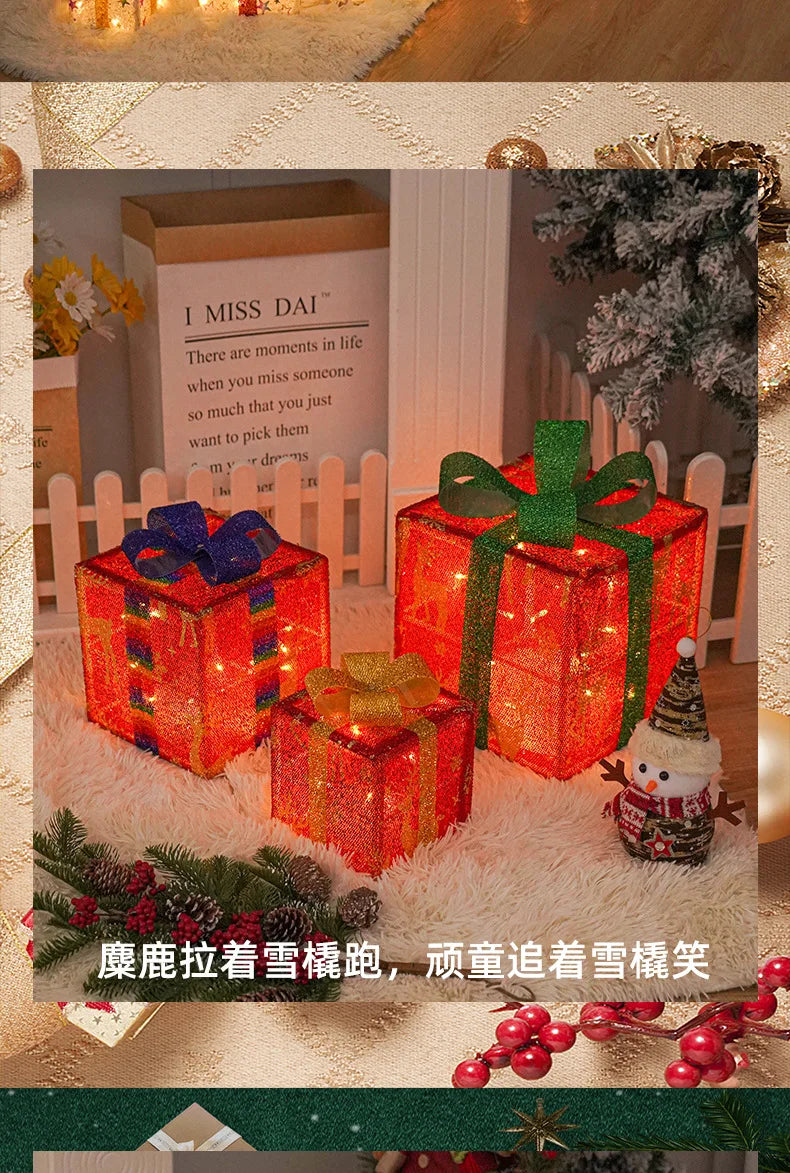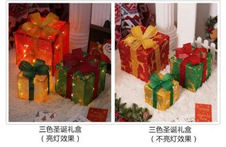 2025 Christmas Gift Box with LED Light String Warm Light Colored Light 3pcs Gift Box Christmas DIY Props Decoration Gift Boxs