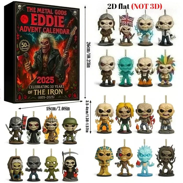 24 Days Eddie Advent Calendar 2025 2D Acrylic Eddie hanging Christmas Band Pendant Advent Calendar 24pcs Keychain Christmas gift