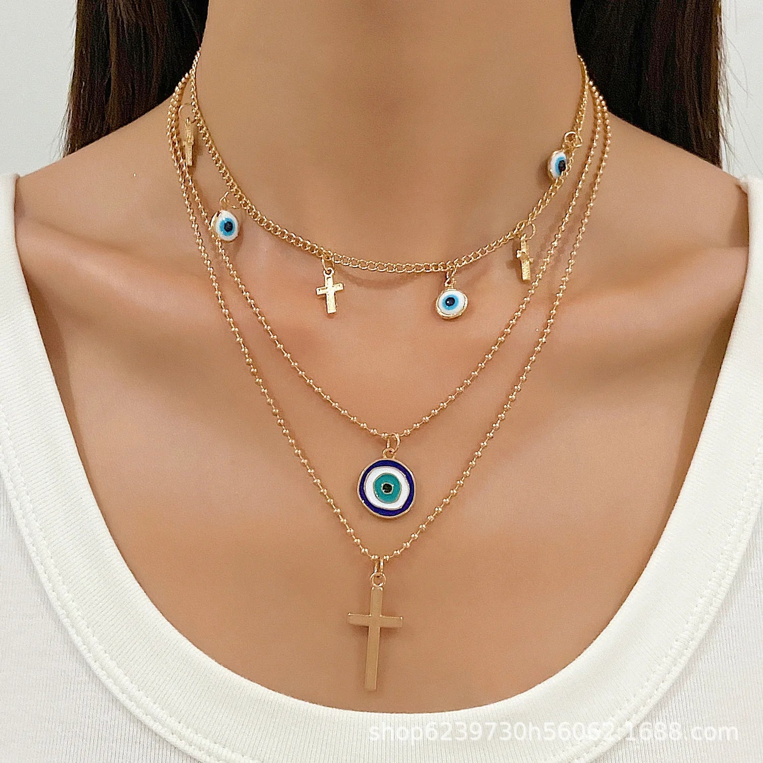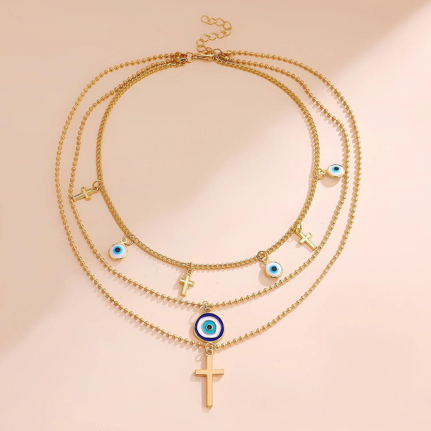 3 Layers Evil Eye Golden Pendant Necklace for Women Men Necklace Waterproof Chain Pendant For Girls Party Jewelry Gift