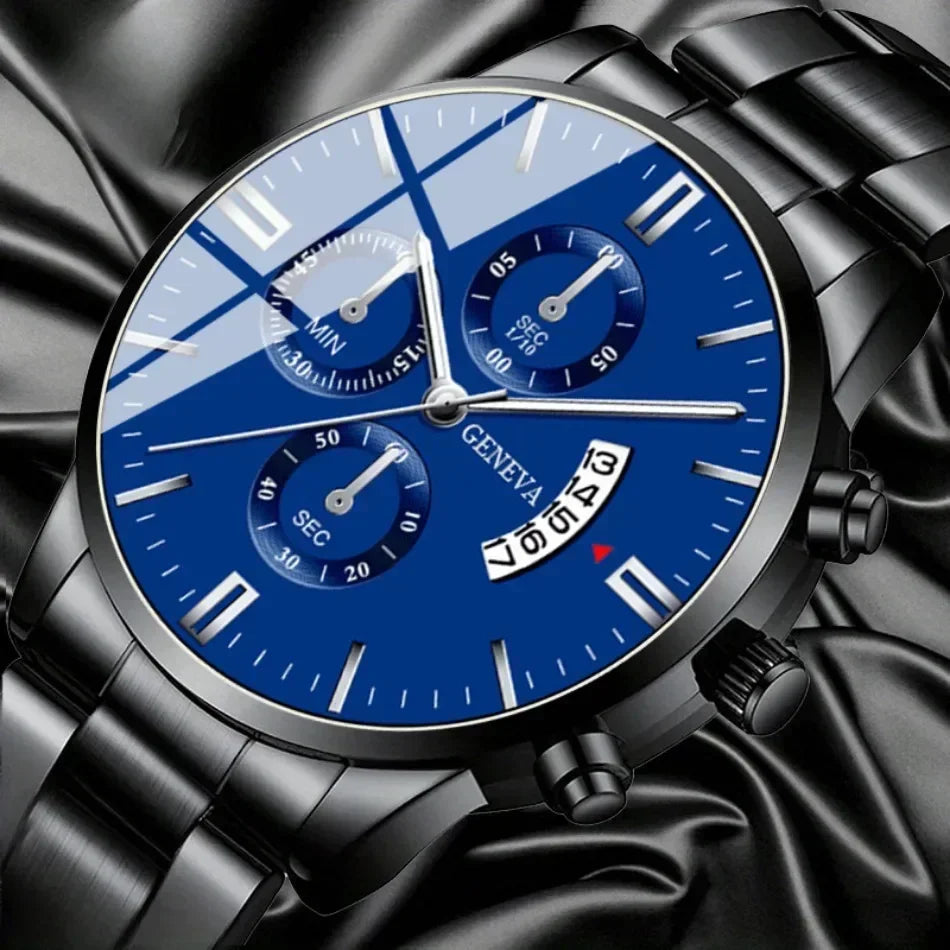 3pcs/set Fashion Business Men's Watch Calendar Alloy Male Watch Bracelet Necklace Jewelry Set Deal Choice for Gifts To Men