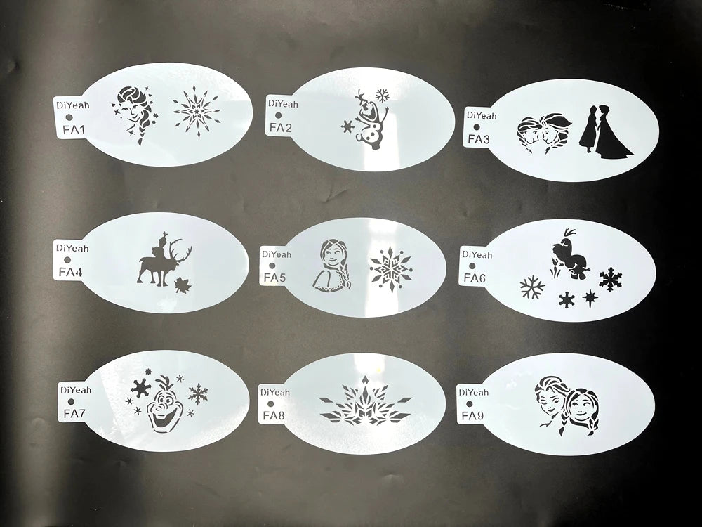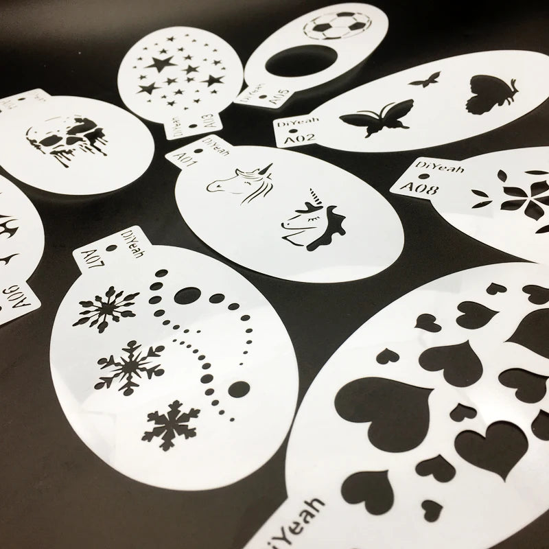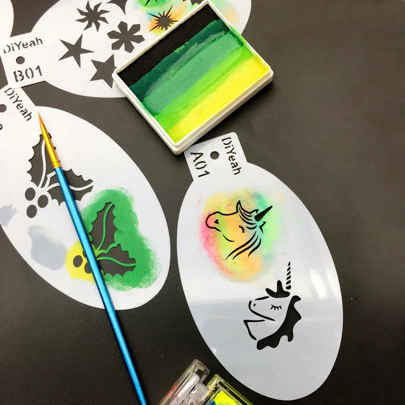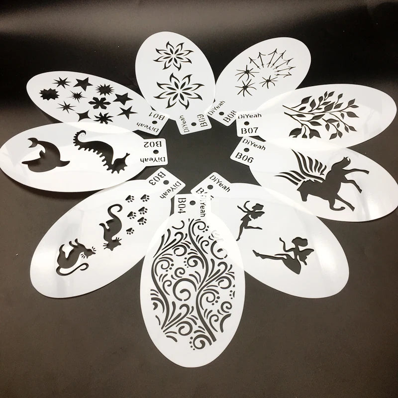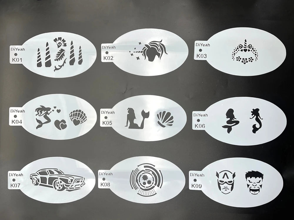9PCS Stencils for Body Painting Face Art Halloween Birthday Party DIY Makeup Stamps Temporary Tattoos Reusable Stencils Plastics