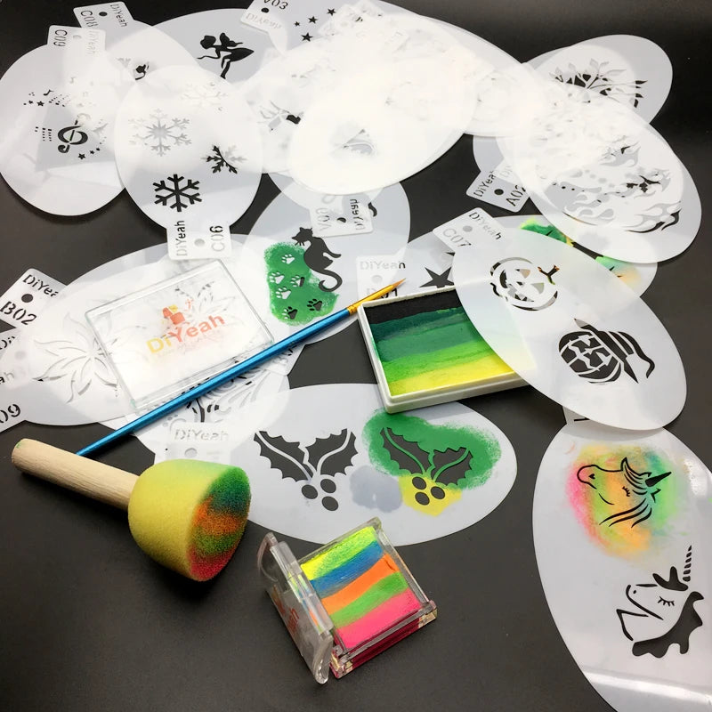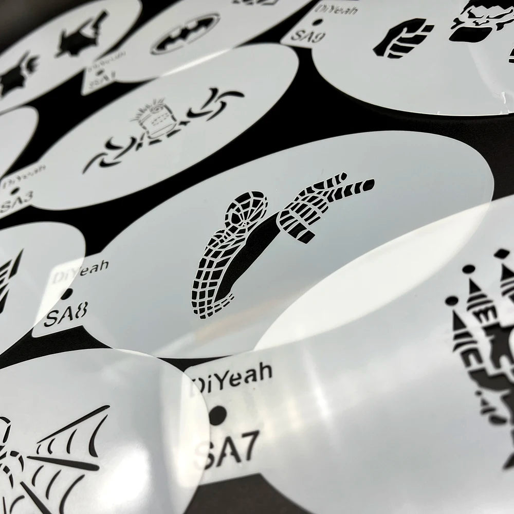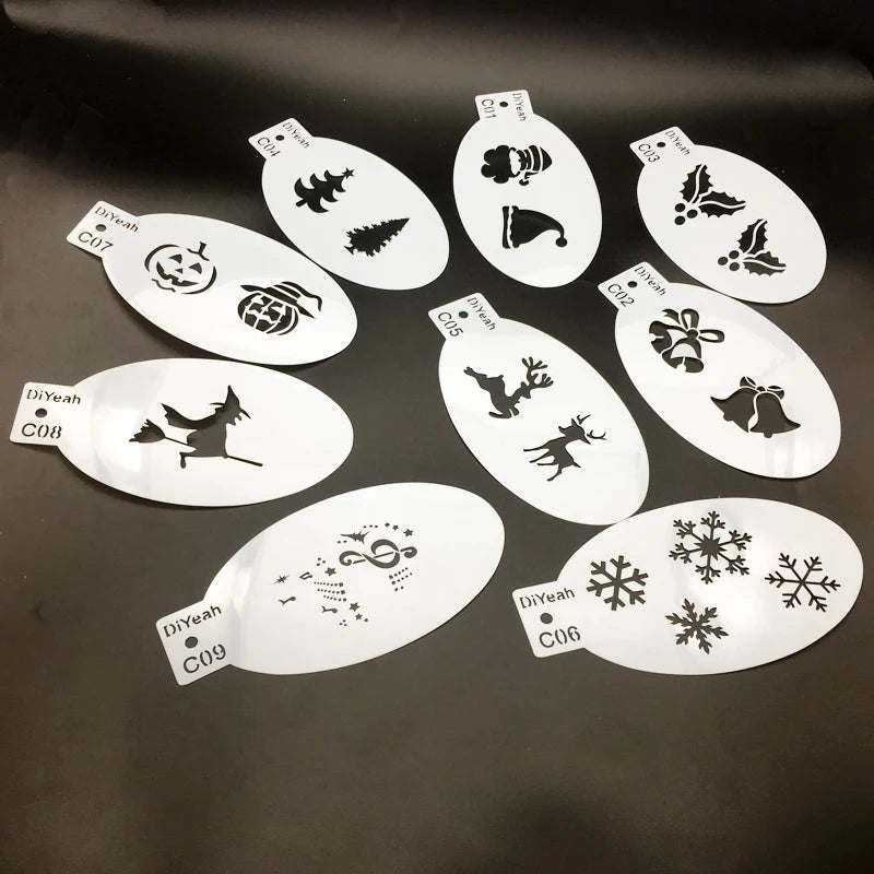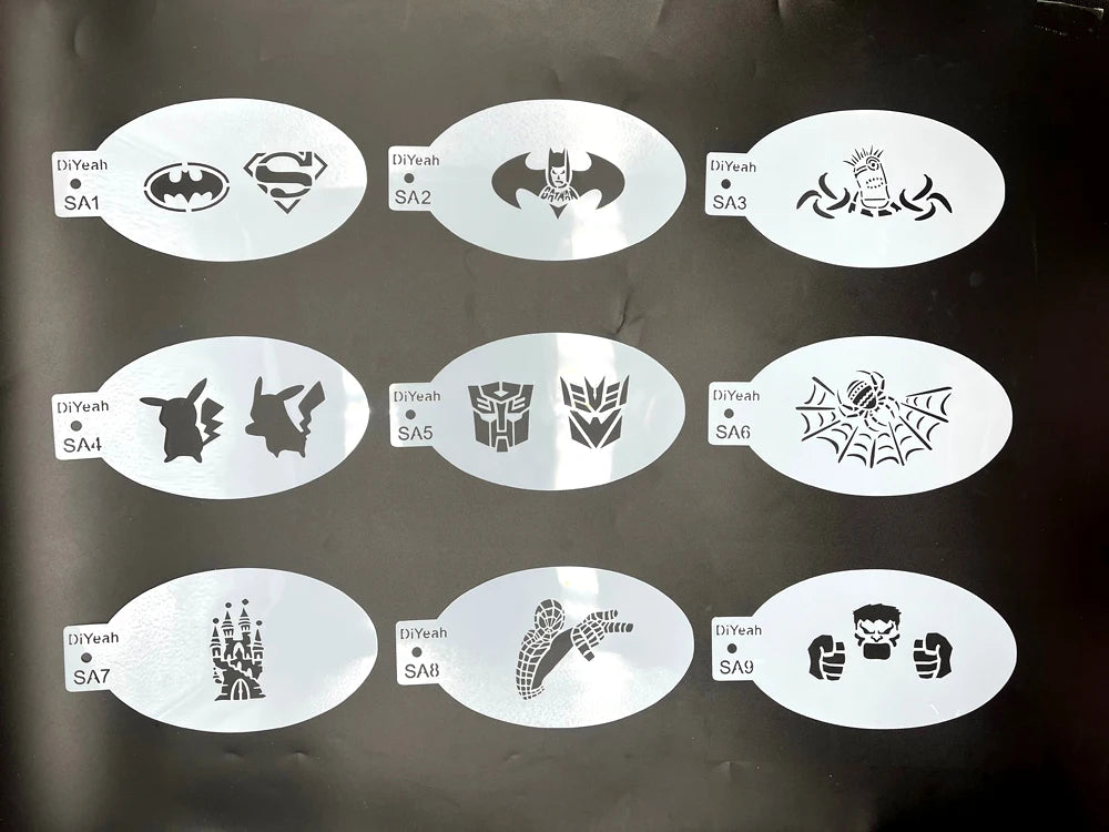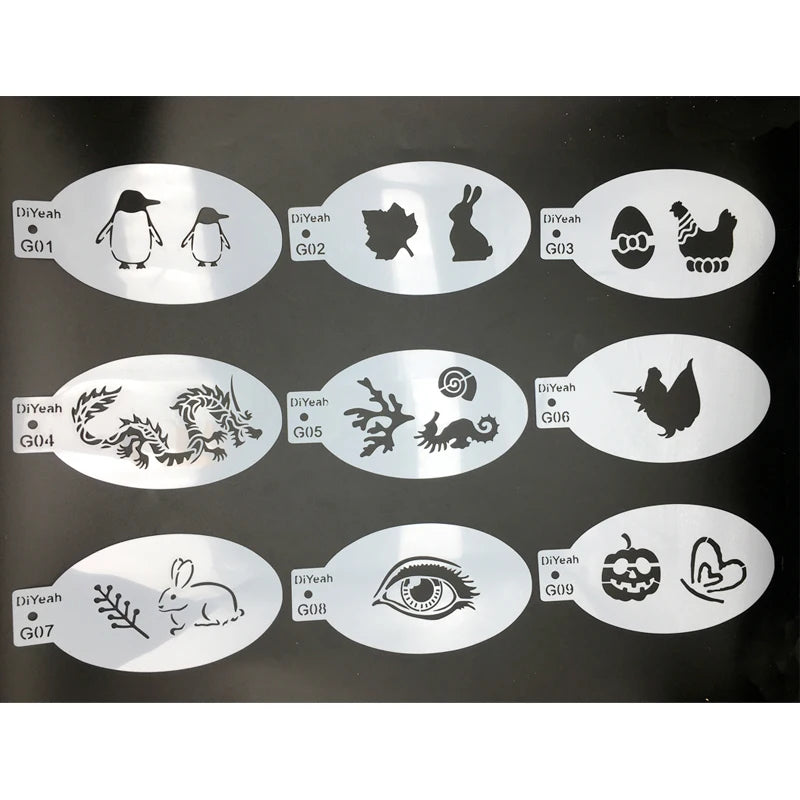9PCS Stencils for Body Painting Face Art Halloween Birthday Party DIY Makeup Stamps Temporary Tattoos Reusable Stencils Plastics