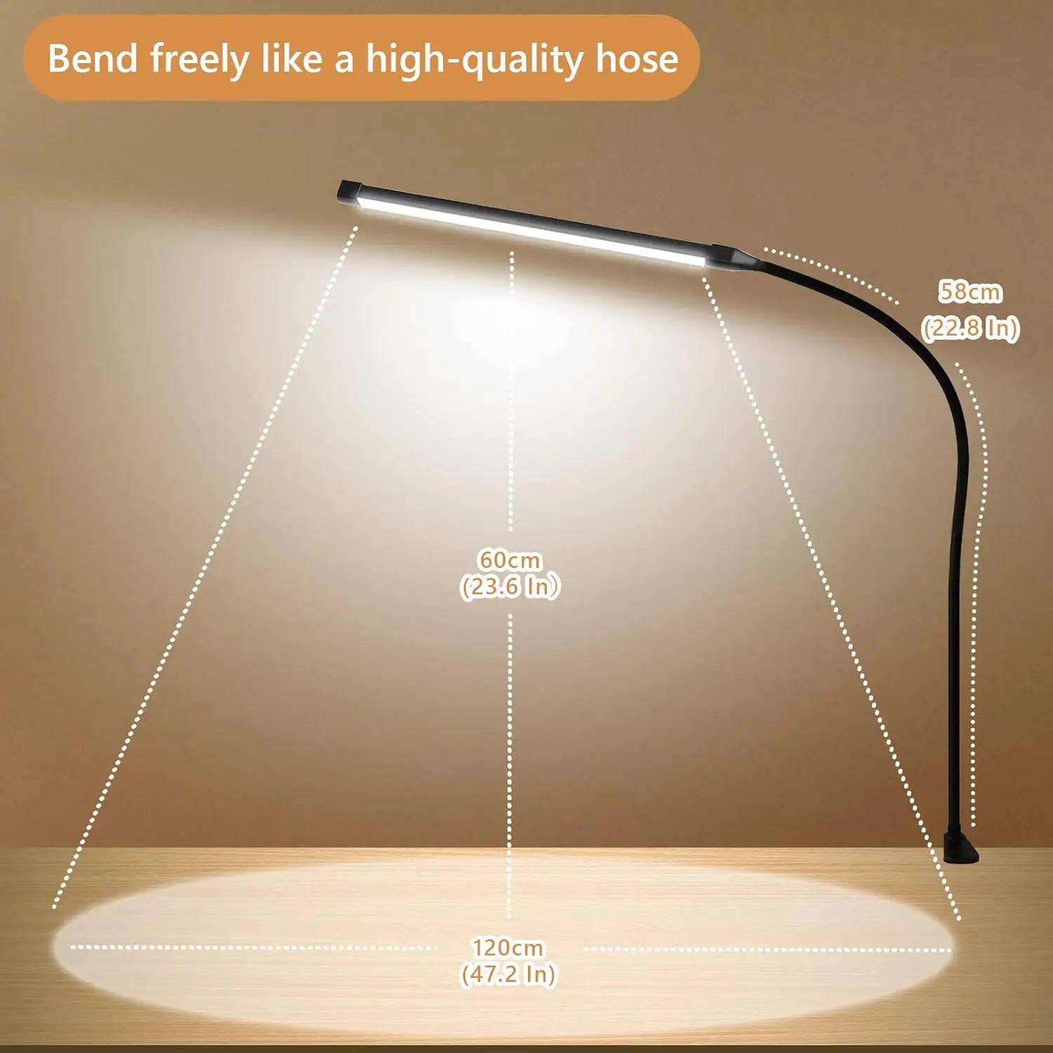 A LED Desk lamp with Clamp, Eye-Caring Clip on Lights for Home Office, 3 Modes 10 Brightness, Long Flexible Gooseneck,Metal