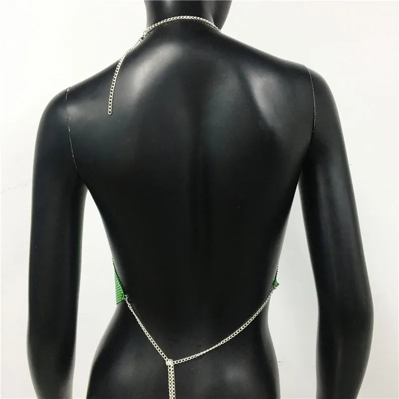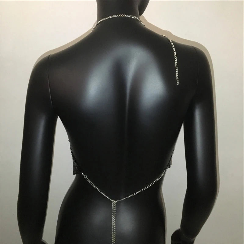 AKYZO Women 2023 Sexy Metal Sequined Tank Camis Summer Gold Silver Backless Cropped Glitter Beach Club Show Wear Tank Tops