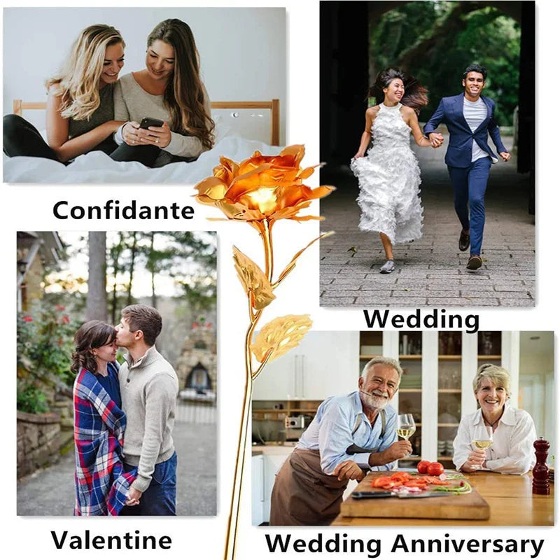 Artificial Rose Flowers 24K Foil Plated Rose Valentines Day Christmas Gift for Wife Mother Lasting Forever Love Golden Flower