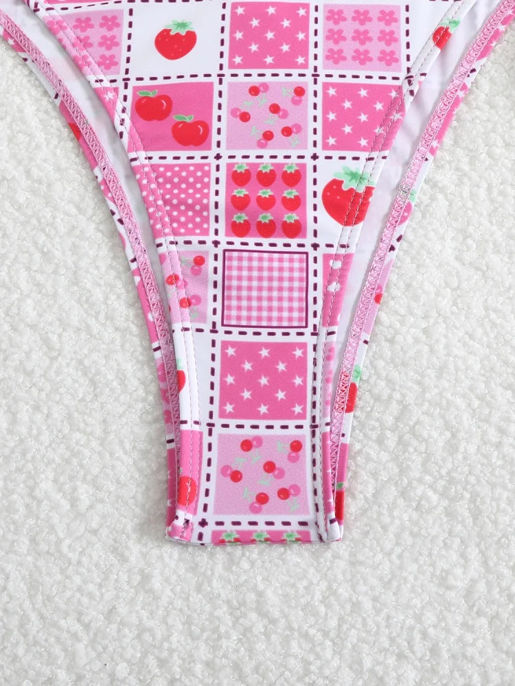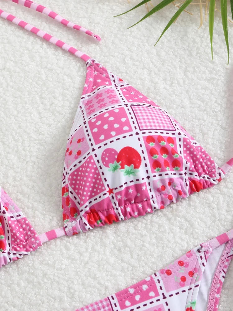Bikini Women Swimsuit 2025 New Print Halter Bikinis Set Sexy Thong Swimwear Summer Two Piece Backless Beach Bathing Suit Female