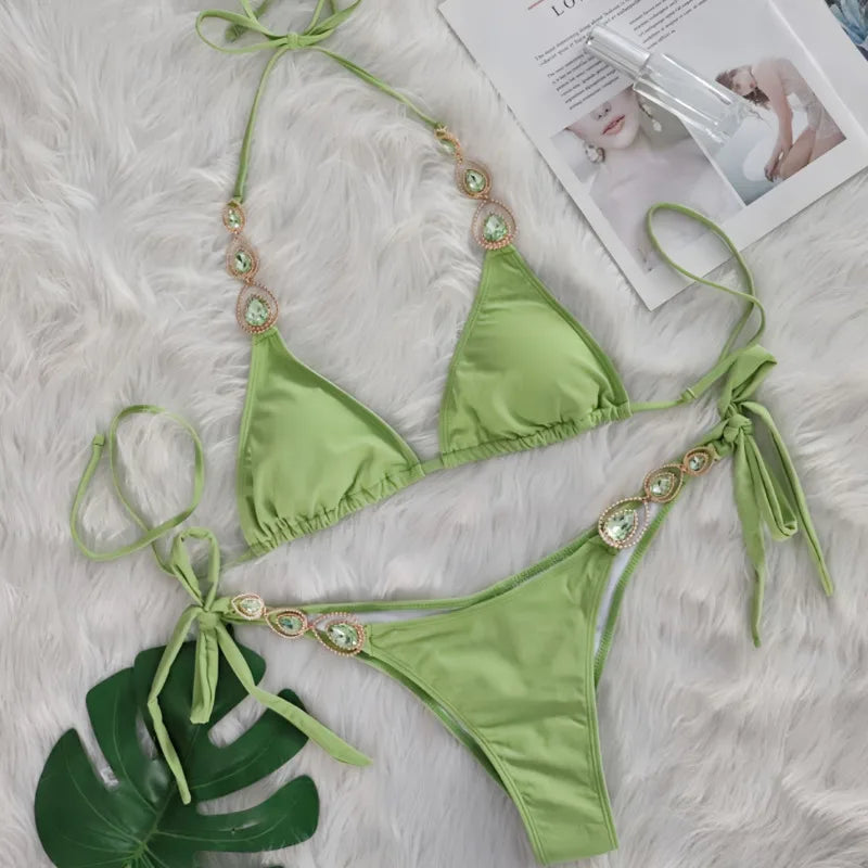 Black Sexy Bikinis 2025 Swimsuit With Rhinestones Women Swimwear Female Push Up Bikini Beach Swim Wear Bathing Suit Pool Bather