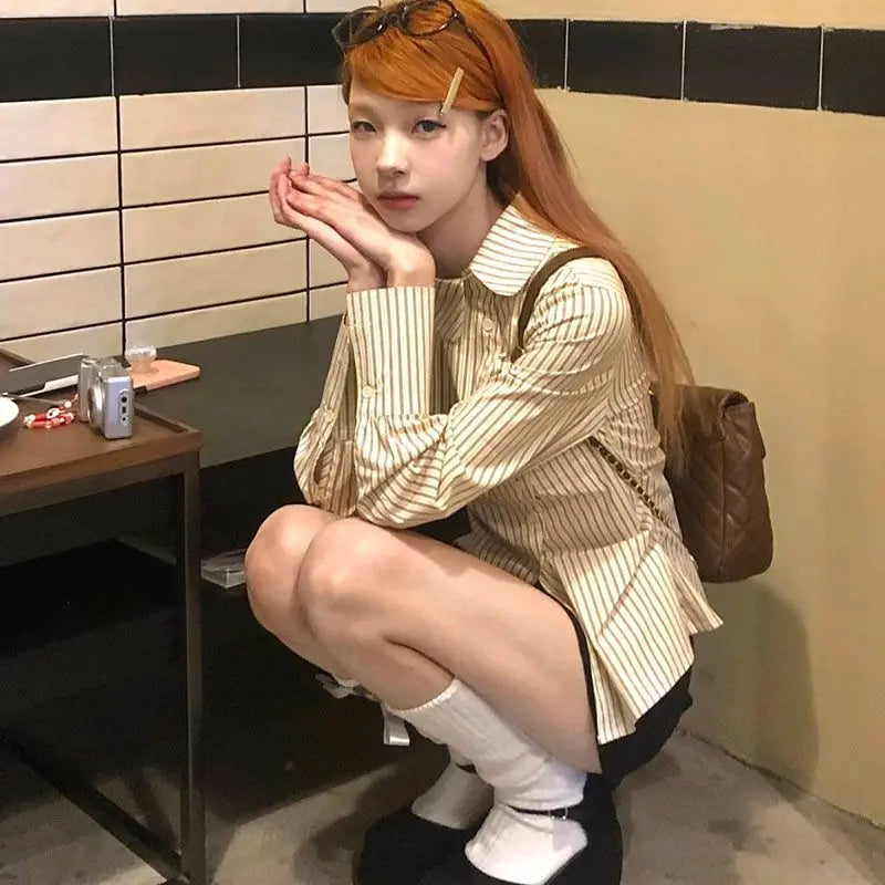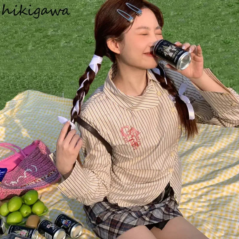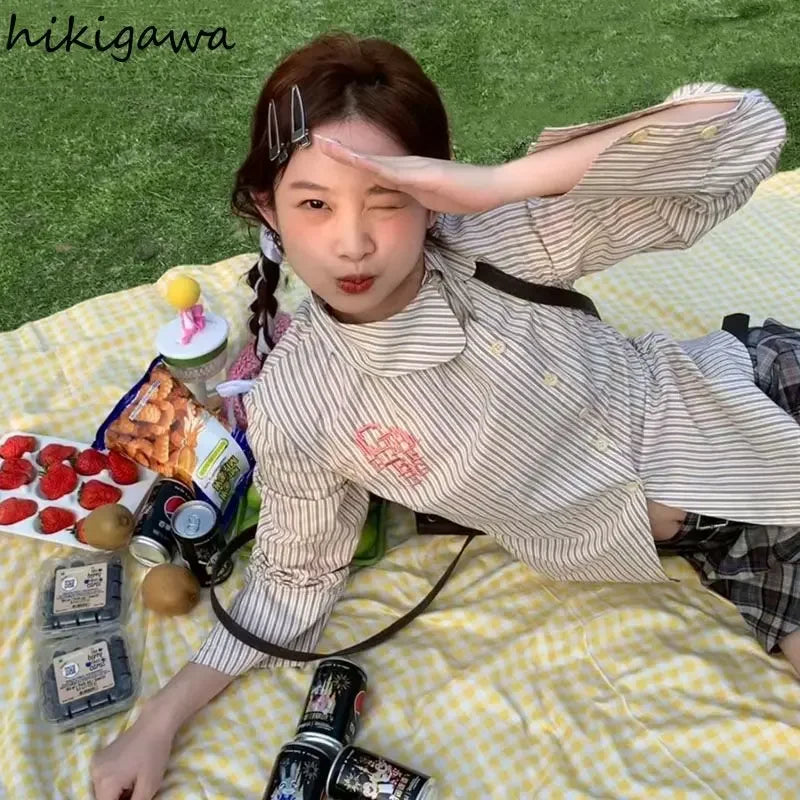 Blusas Mujer De Moda Striped Y2k Tops Tunic Shirts Blouse Women Clothing O-neck Slim Shirt Fashion Embroidery Vintage Tops