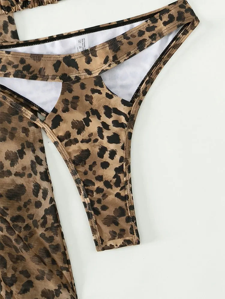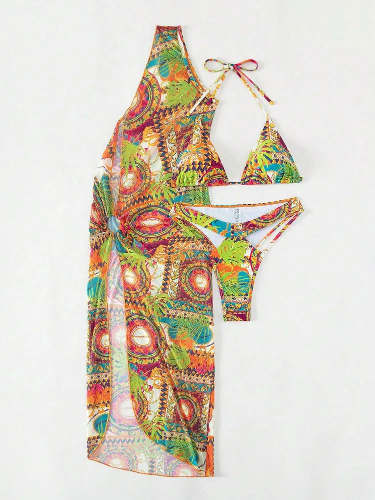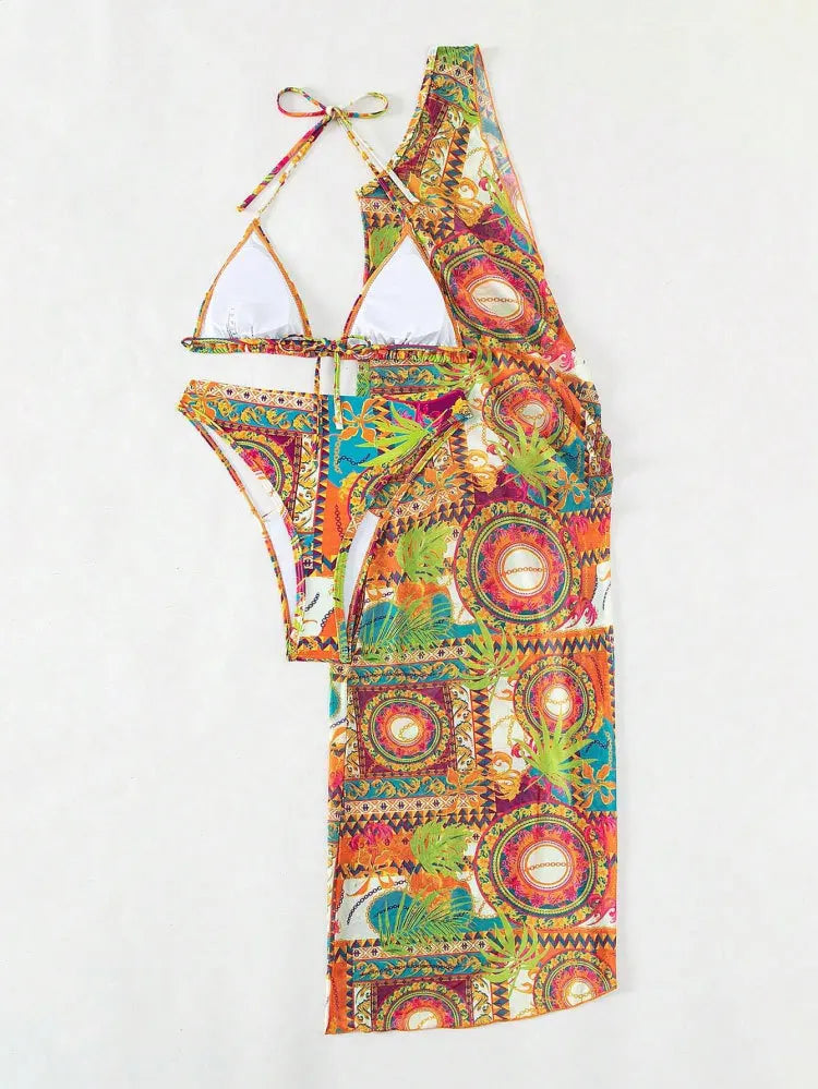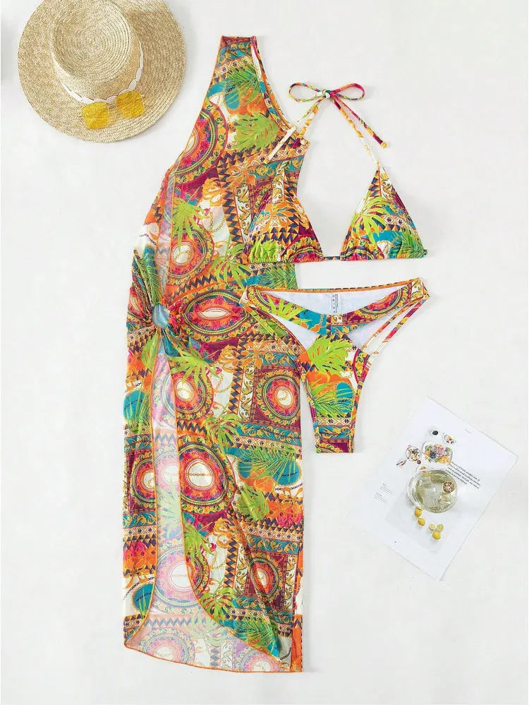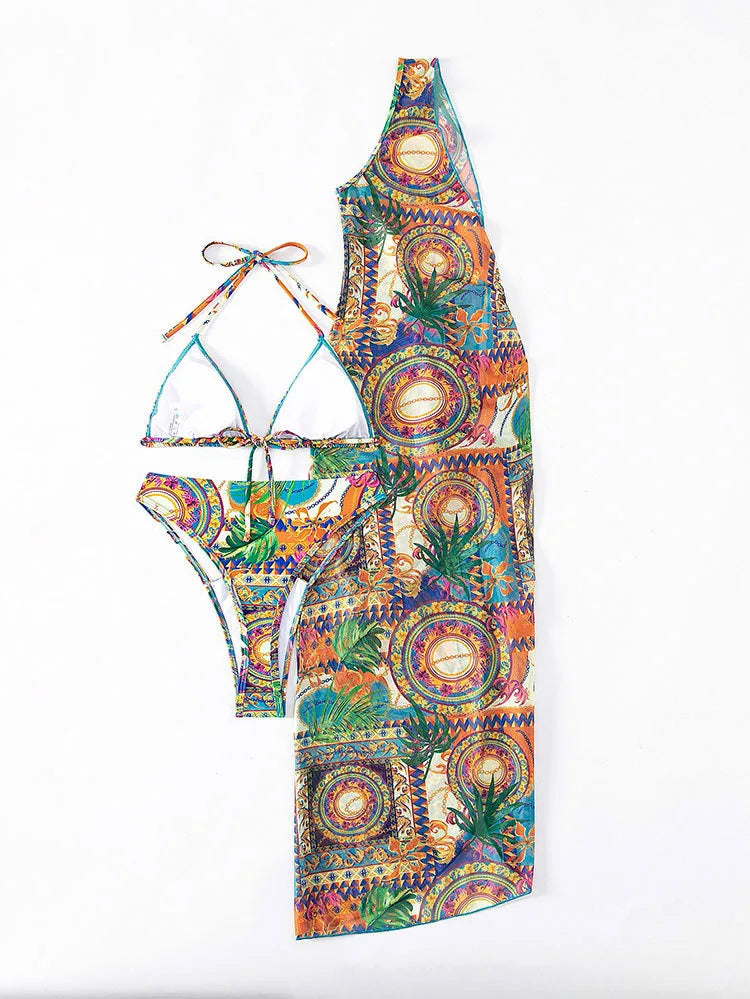 Cikini-One Shoulder Mesh Beach Skirt for Women, Sexy Bikinis Set, Summer Swimsuit, Bathing Suit, Three Piece