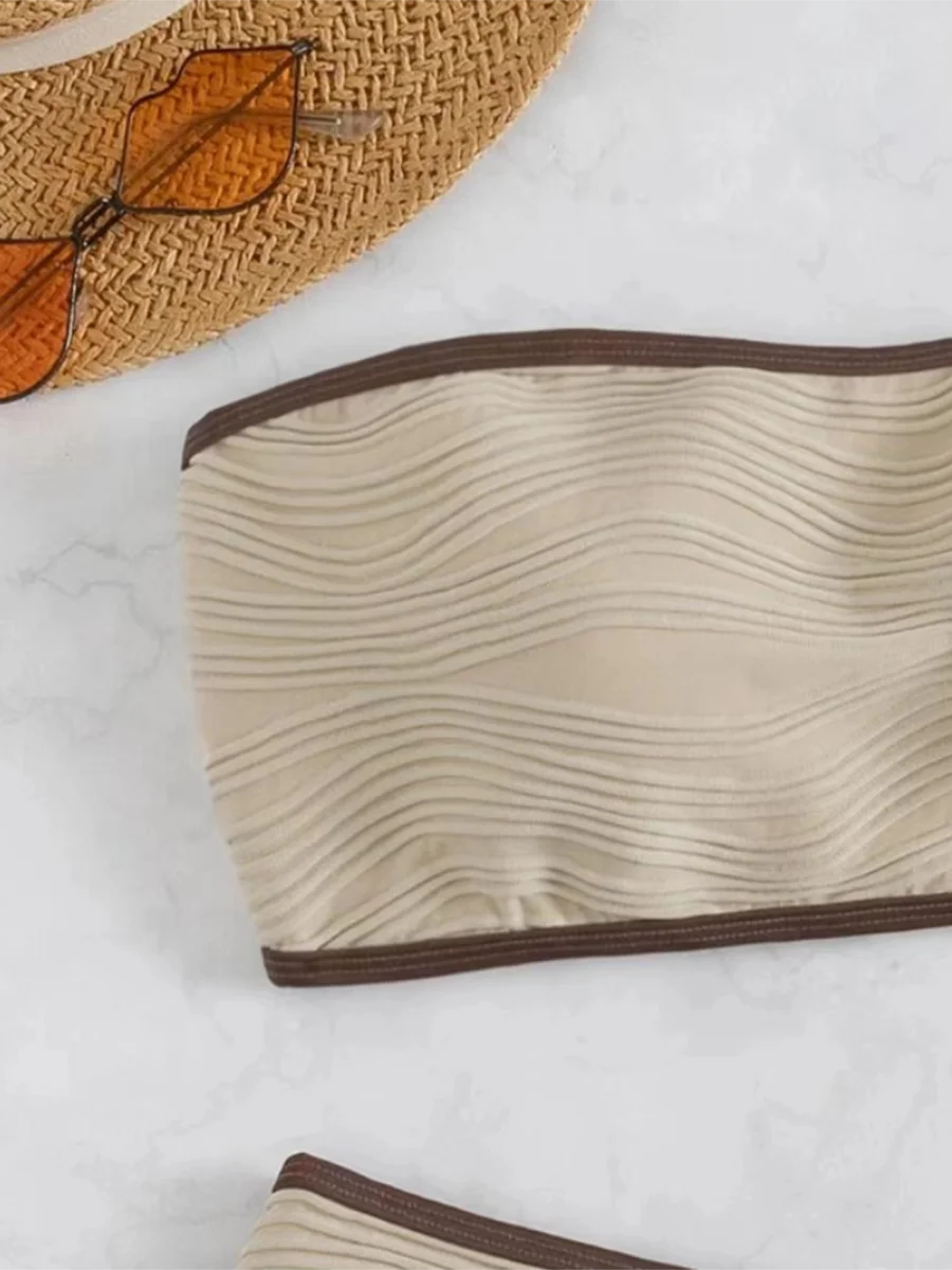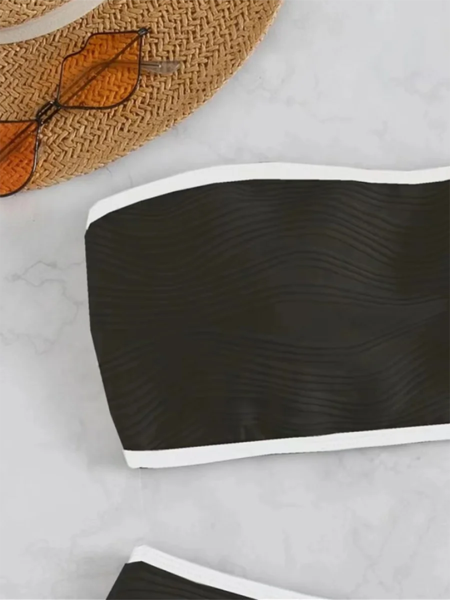 Contrast Binding Bandeau Bikinis 2025 Women Sexy Thong Swimsuit Push Up Swimwear Female Bathing Suit Swimming Summer Beachwear