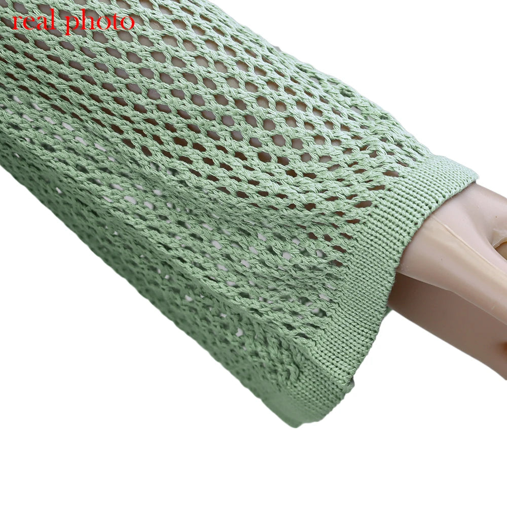 Cryptographic Hollow Out Knitted Top and Skirt Sets Outfits Women Elegant Summer Wrap Over Split 2 Piece Set Holiday Beachwear