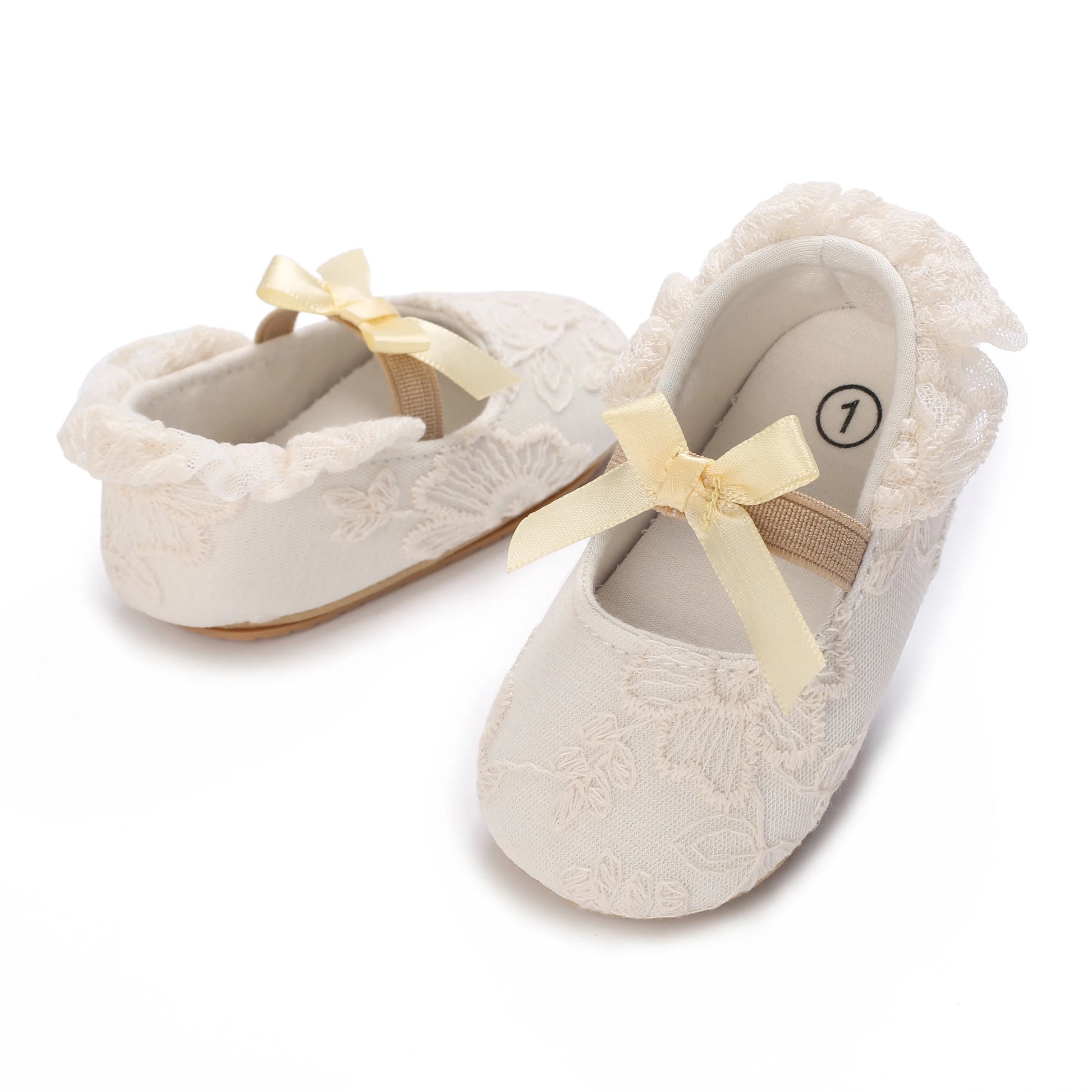 Cute Lace Baby Princess Shoes for Spring And Autumn 0-18M Infant Girls Anti-Slip Rubber Sole Bow Detail Anti-Slip Footwear