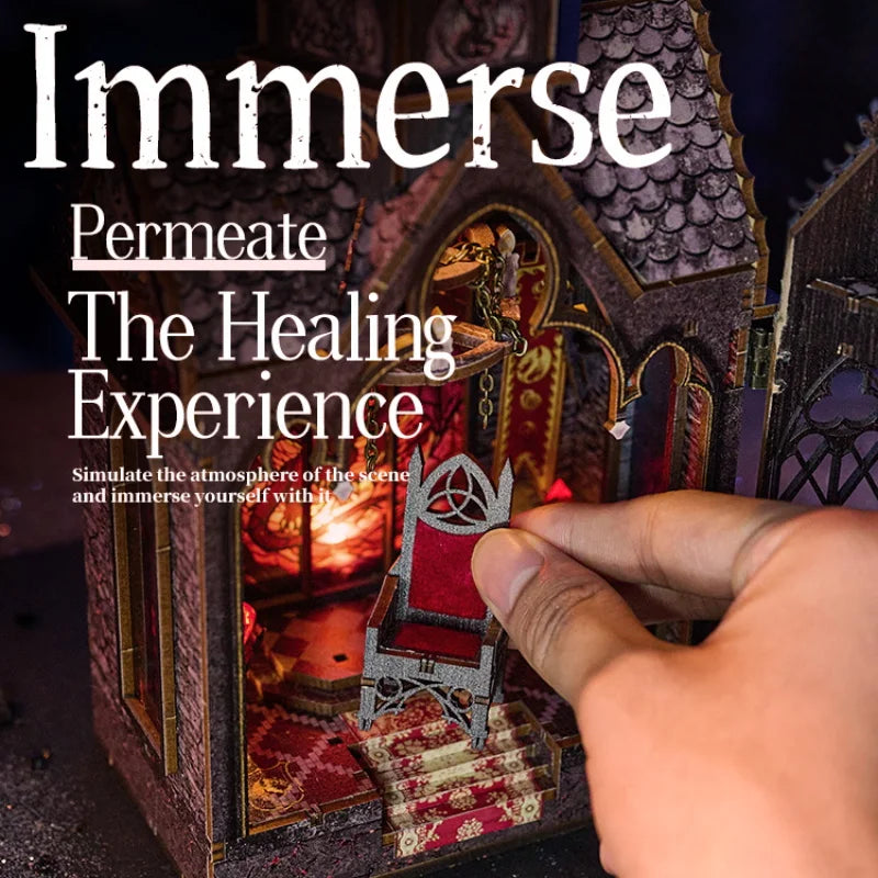 DIY Book Nook Kit Wooden Doll House 3D Puzzle Assembly Toy Home Bookend Bookshelf Insert With Furniture Toys For Christmas Gift