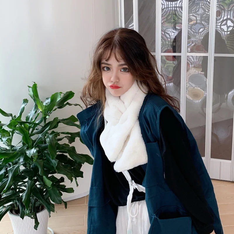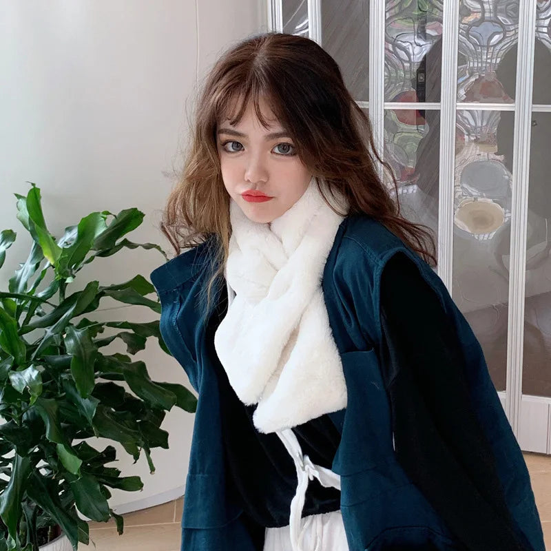 FAITOLAGI Korean Winter Faux Rabbit Fur Women Scarf Soft Plush Snood Scarves Solid Color Neck Collar Warmer Stuff Christmas Gift