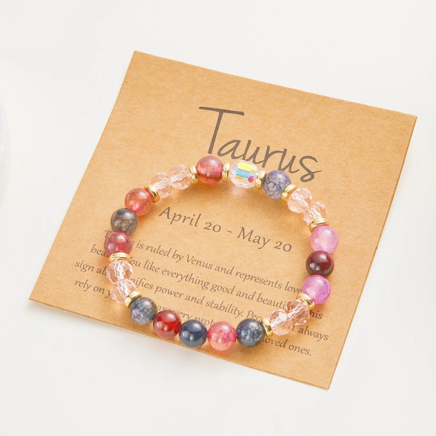 Fashion 12 Zodiac Crystal Beaded Bracelet Aries Taurus Gemini Cancer Leo Virgo Libra Scorpio Aquarius Pisces Women Jewelry Gift