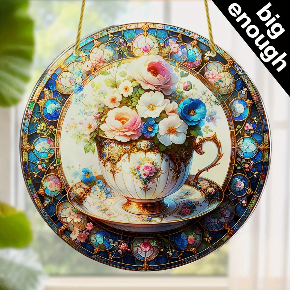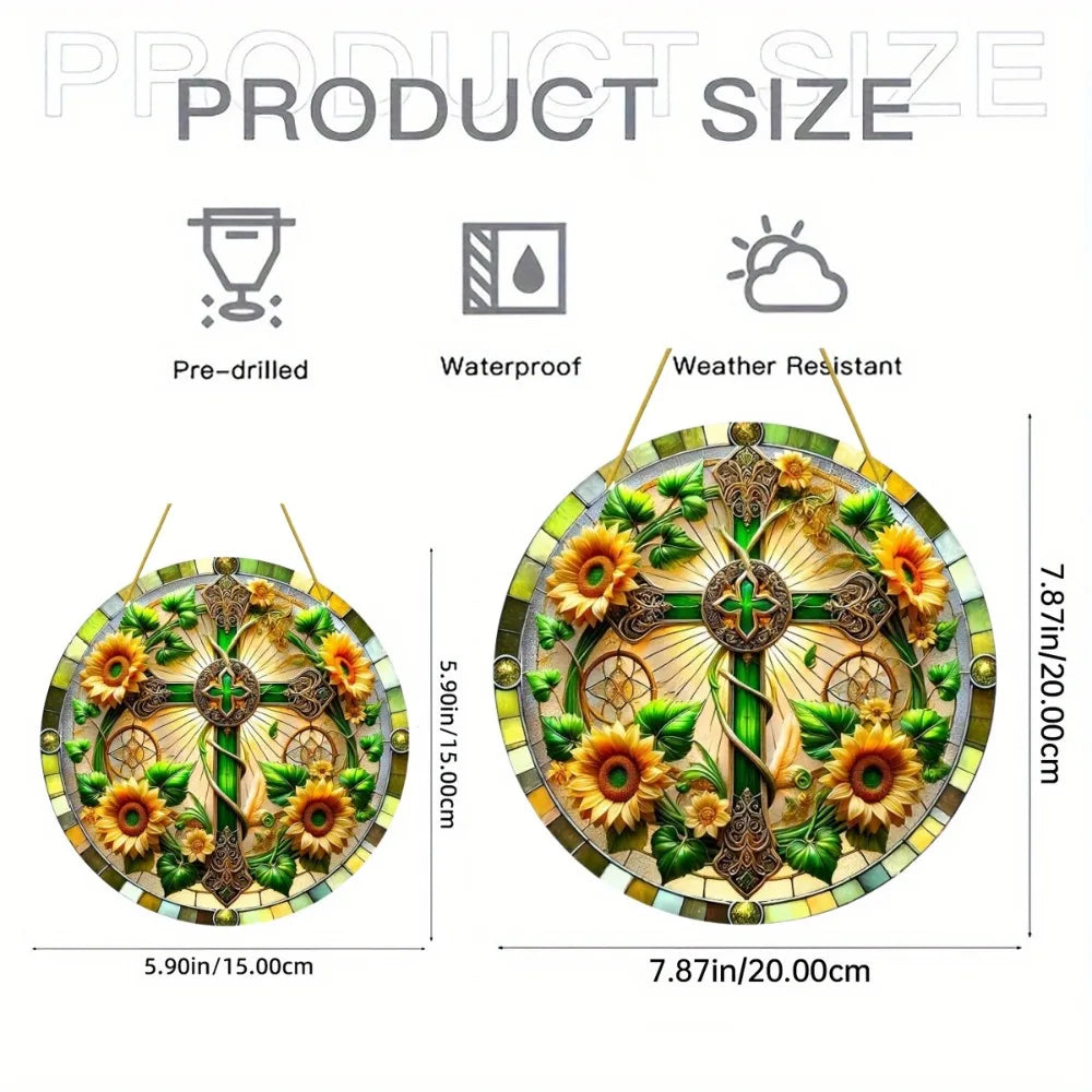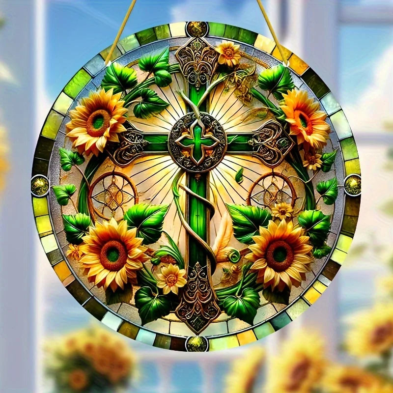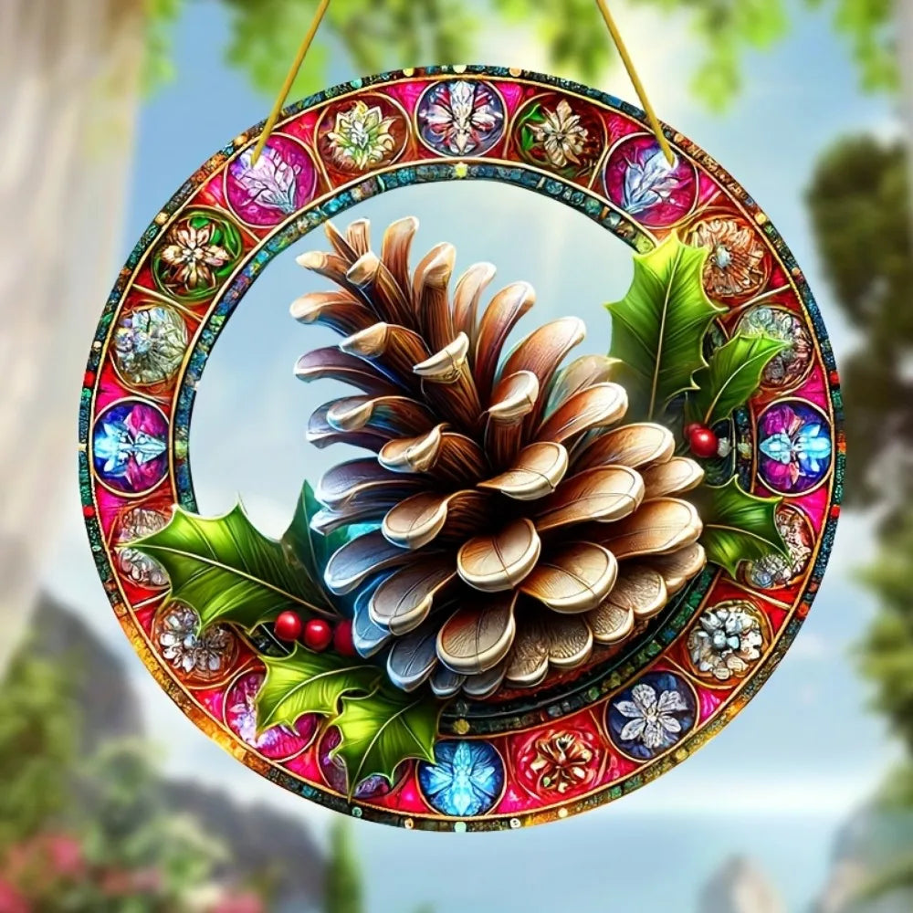 Flower Suncatcher, Stained Window Hanging, Acrylic Sign, Winter Decor, Round Sign, Wreath Sign, Wreath Center, Christmas Gift