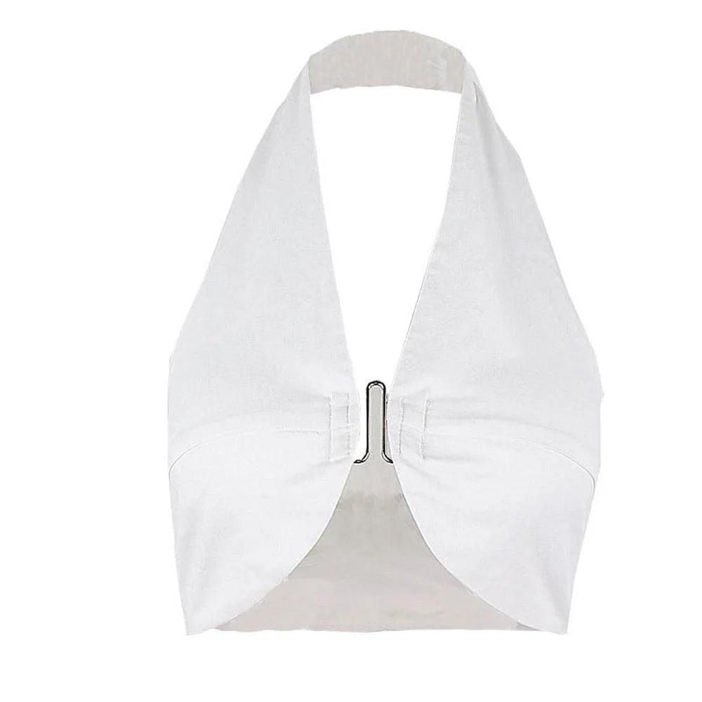 FZCSPEED Women's Sexy Halterneck Top Strapless Open Back Crop Top Slim Fit Elegant Crop Top