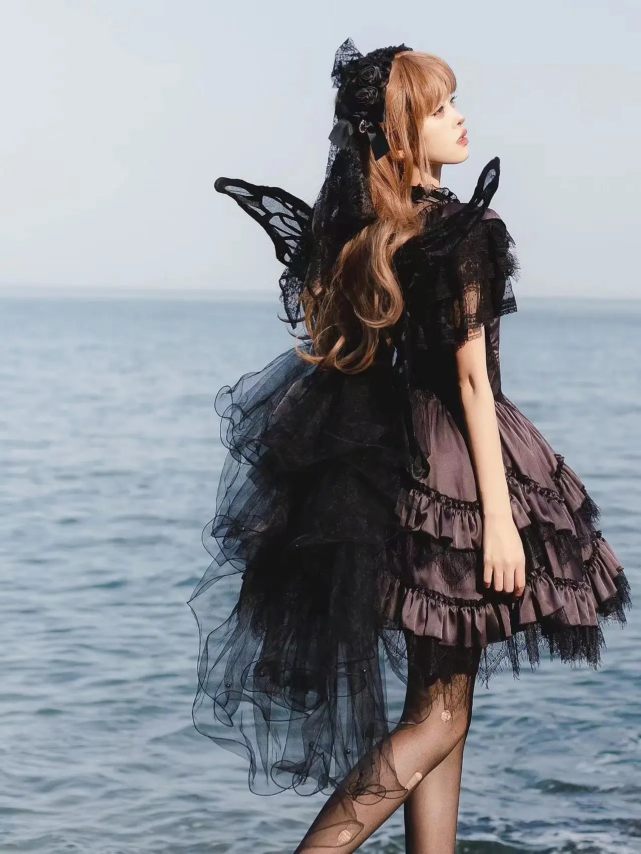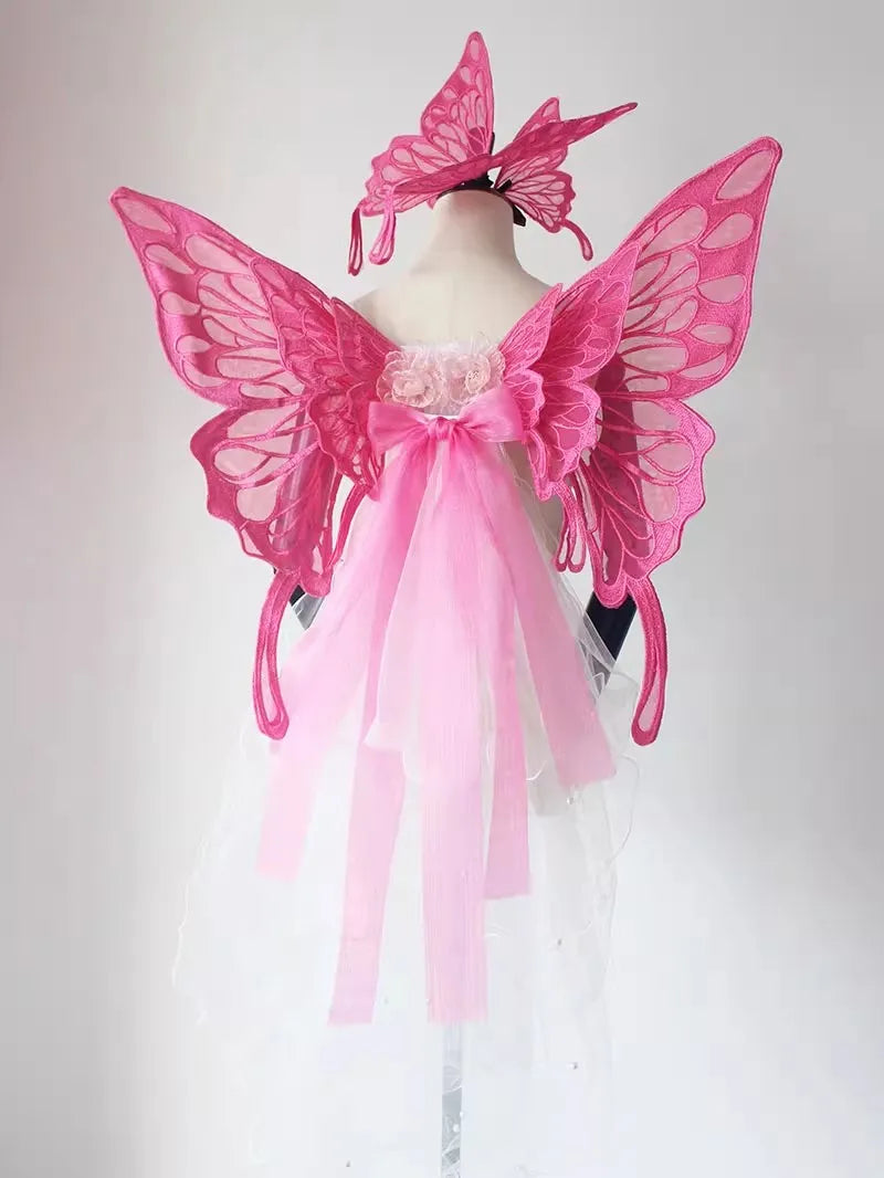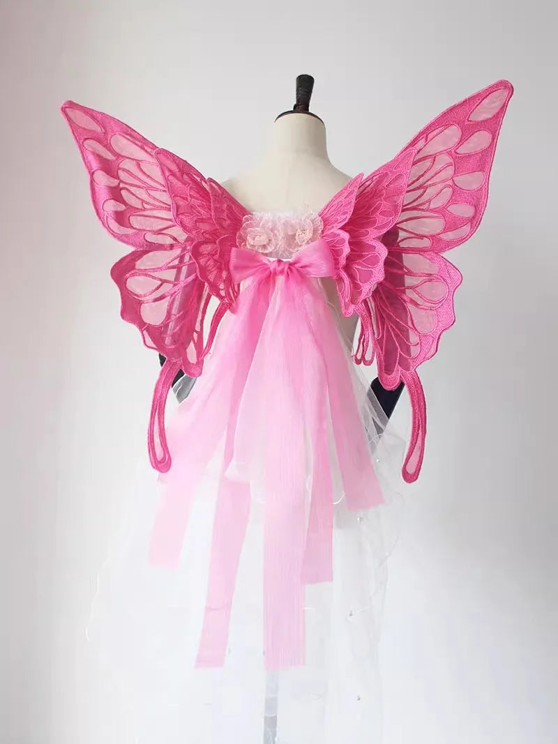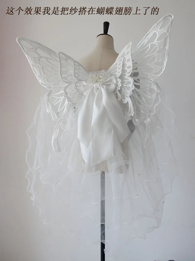 Handmade Black White Butterfly Wings Can Back Wear Lolita Mesh Back Decoration for Party Photo Props Girl Womens Butterfly Clips