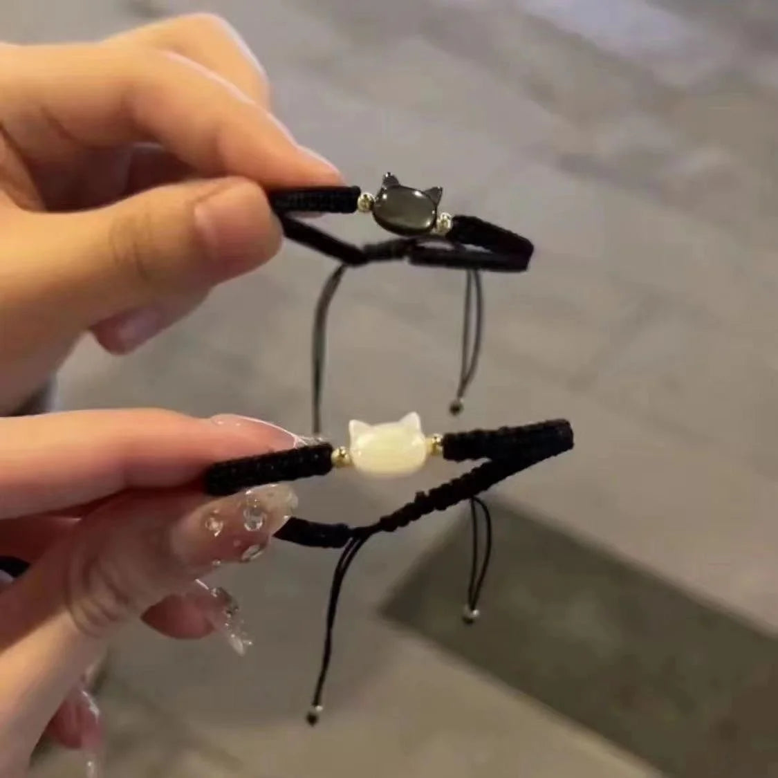 Handmade Cute Black Cat Animal Couples Bracelet for Girl Women Strap Rope Bracelets Friendship Couples Jewelry Gift