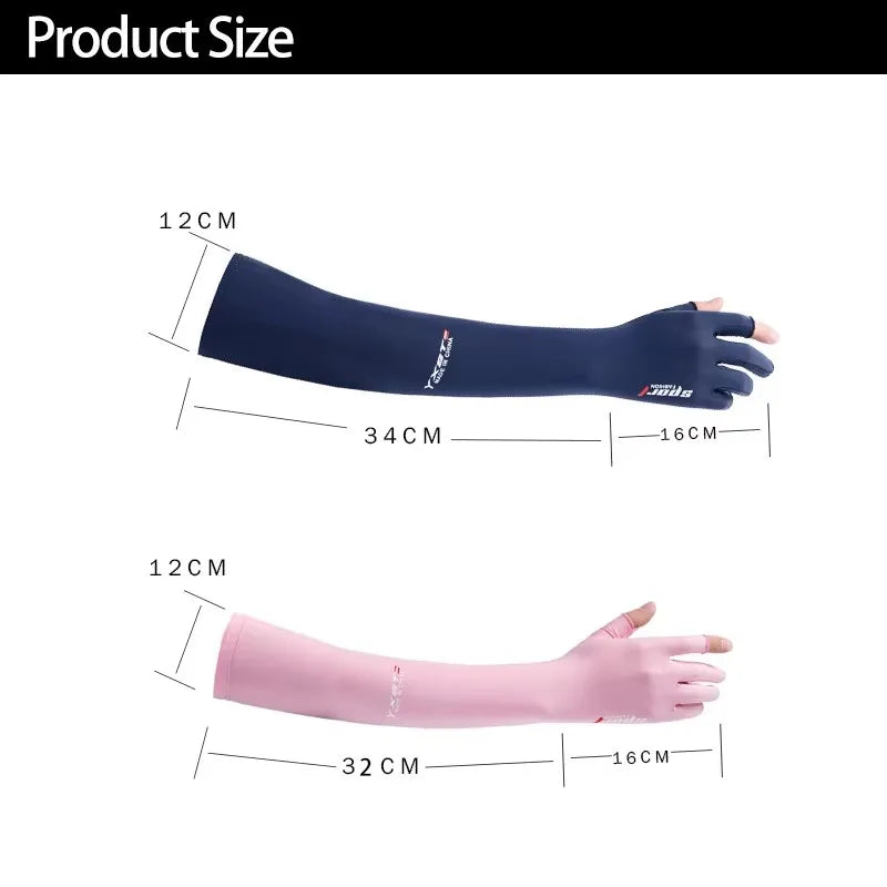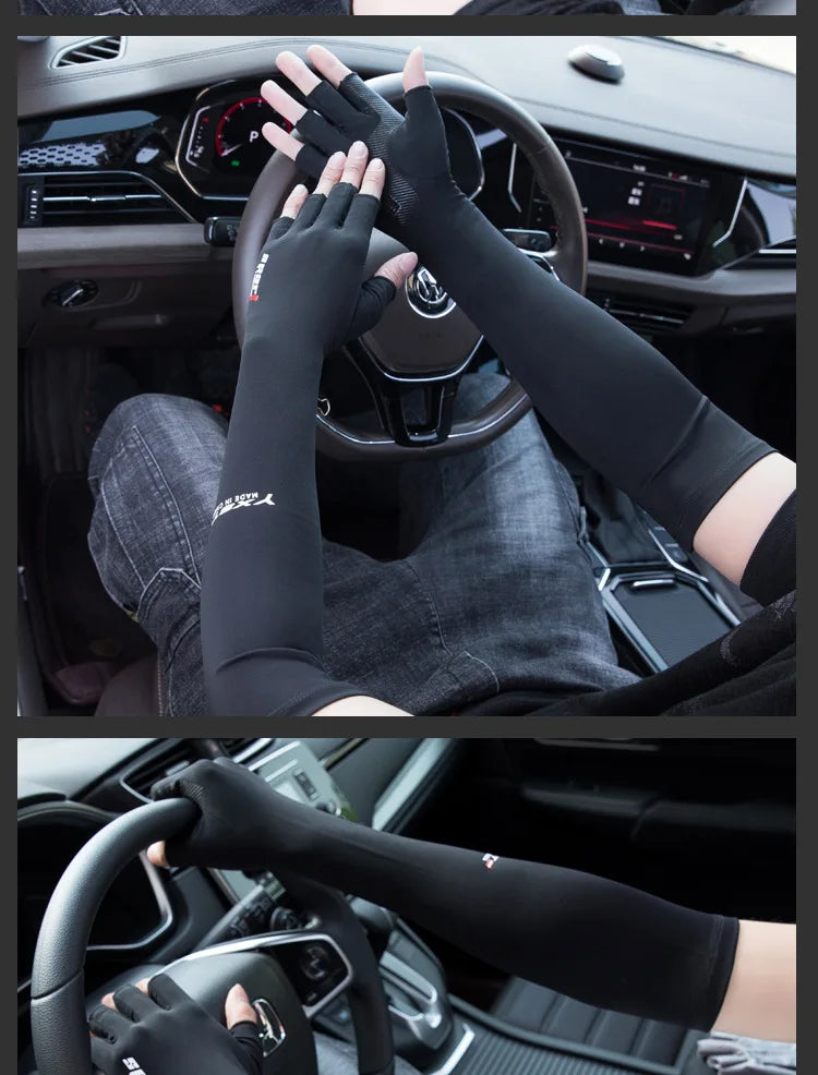 Ice Silk Sleeves Women Summer Sun Protection Men Fishing Cycling Breathable Two-Finger Non-Slip Gloves Arm Warmer Driving Sleeve
