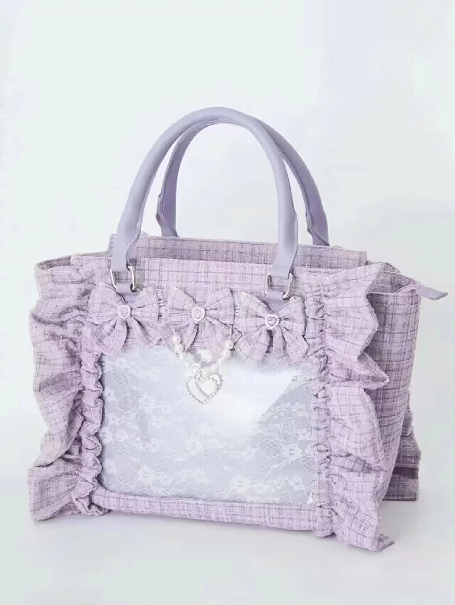 Japanese Style Mine Ita Bag Ruffled Lace Women Girls Rhienstone Pearl Bowknot Square Tote Shoulder Portable Bolso Handbags