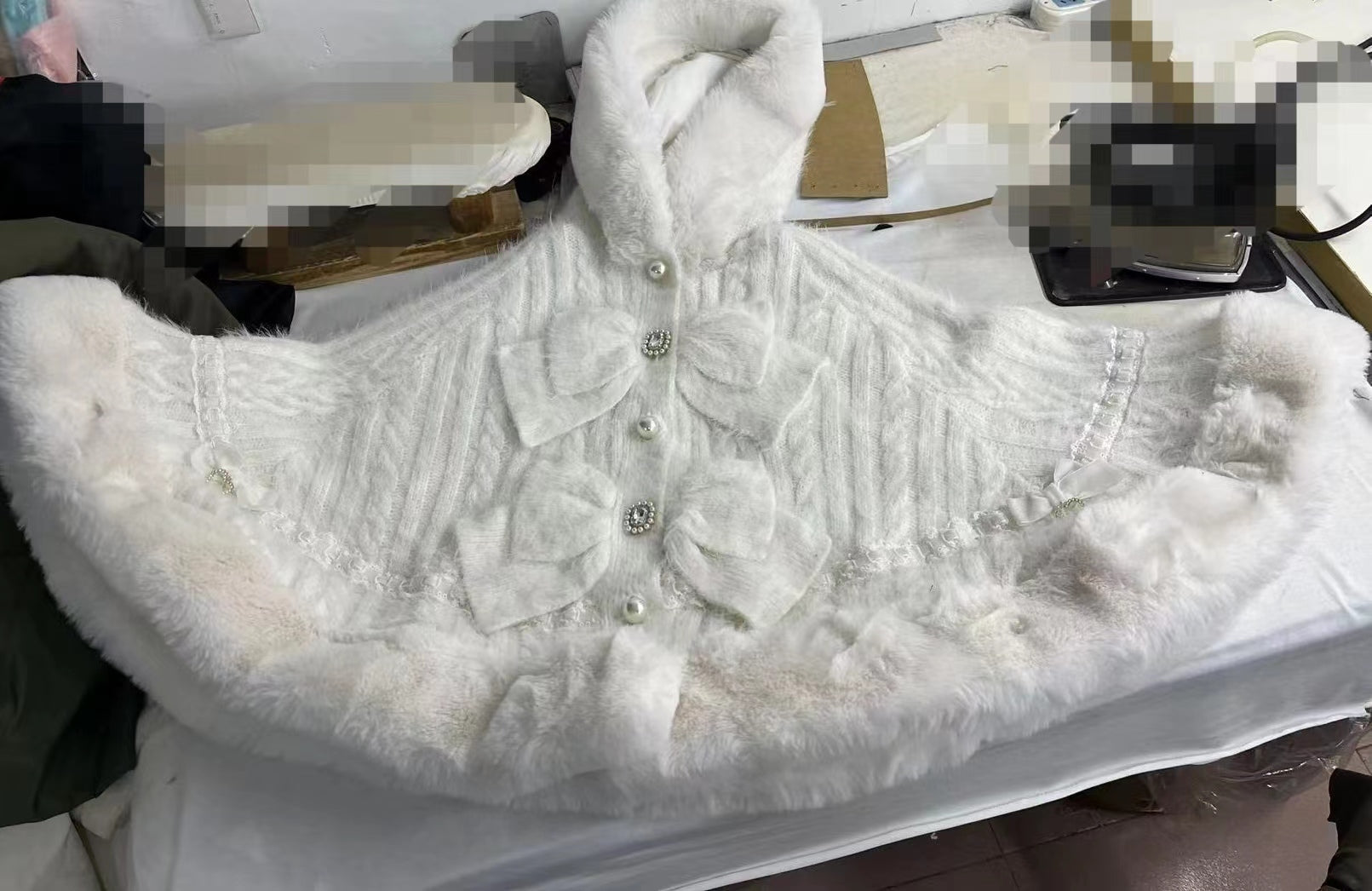 Japanese Sweet Soft Thick Women's Double-Layer Big Ribbon Hooded Knitted Cloak 3 Colors Autumn and Winter Ponchos Warm Jacket