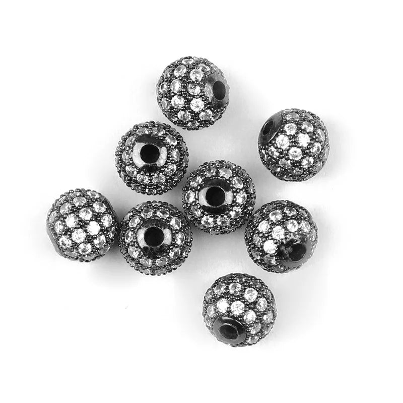 JHNBY 4pcs White Zircon Copper Spacer Beads 6/8/10mm Round Pave CZ Crystal Ball Loose Beads Jewelry Bracelet Making DIY Findings