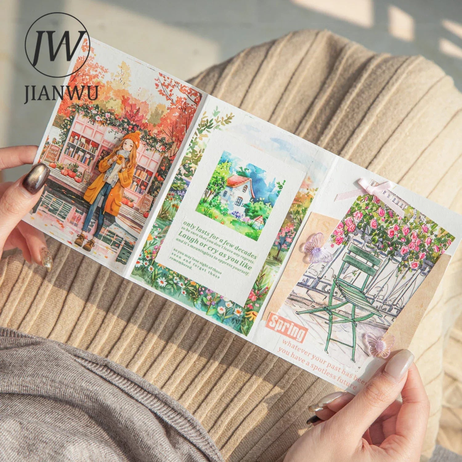 JIANWU 80mm*200cm Road View Series Vintage Travel Flower Landscape Material Collage Washi Tape Creative DIY Journal Stationery