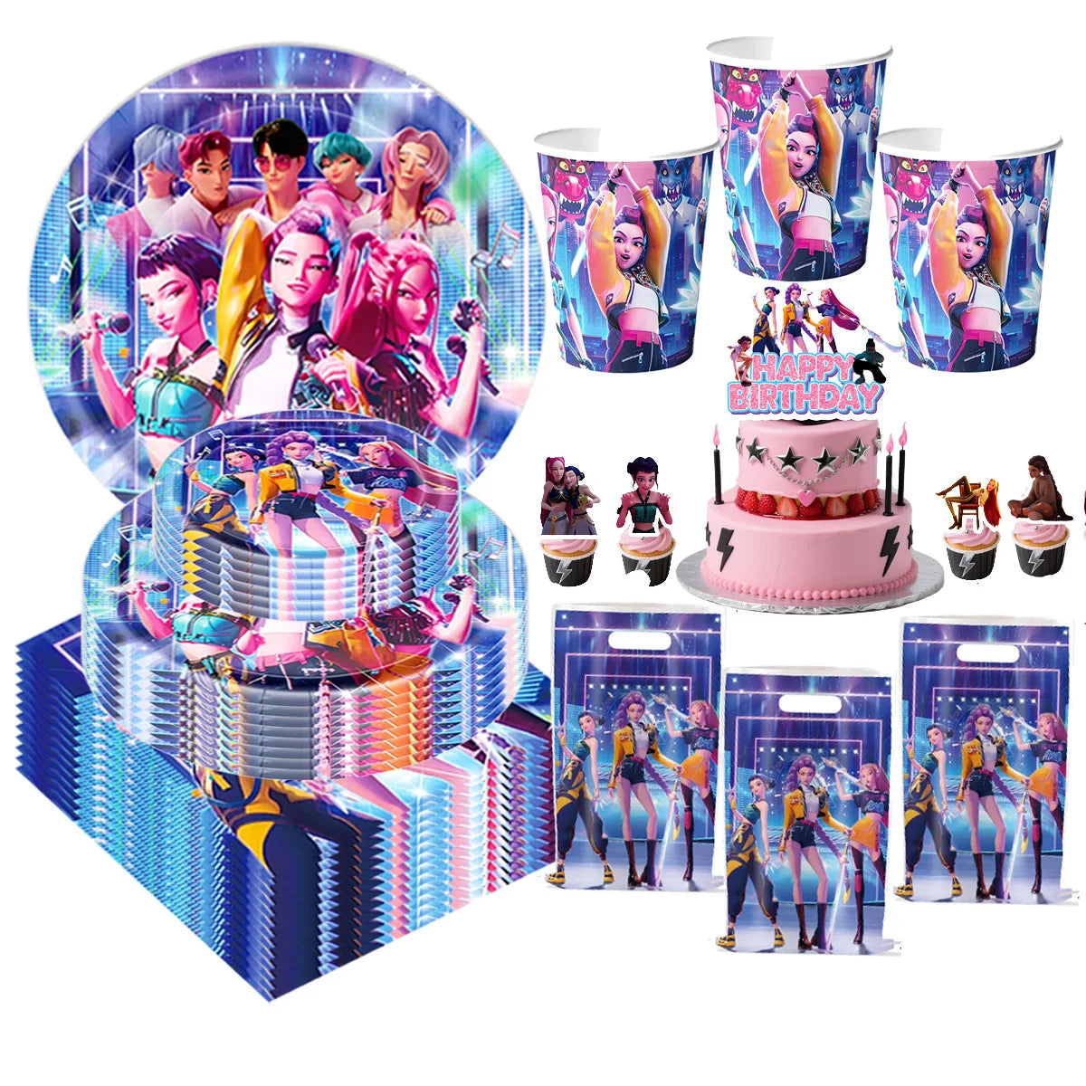 K-Ppop Demon Hunter Party Favor Disposable Tableware Set Backdrop Banner Slap Bracelets Baby shower Birthday Christmas Gift