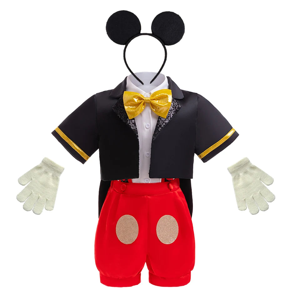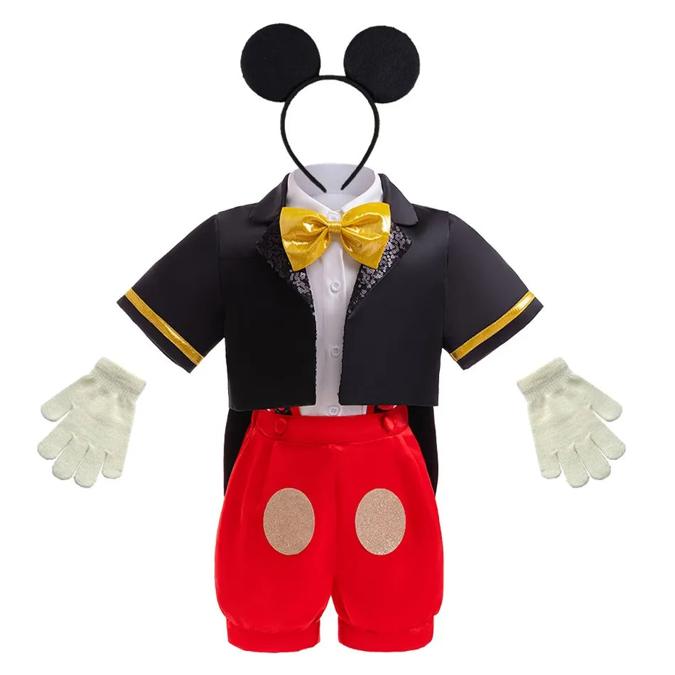 Kids Boys Cartoon Mouse Cosplay Costume Bow Tie Top+Coat+Suspender Shorts+Headband Clothing Sets For Halloween Christmas