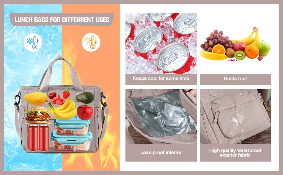 Large Lunch Bag Insulated Cooler Bag Lunch Box, Thermal Bag for Work Picnic, Portable Cool Box Reusable Tote Lunch Bag Carry Bag