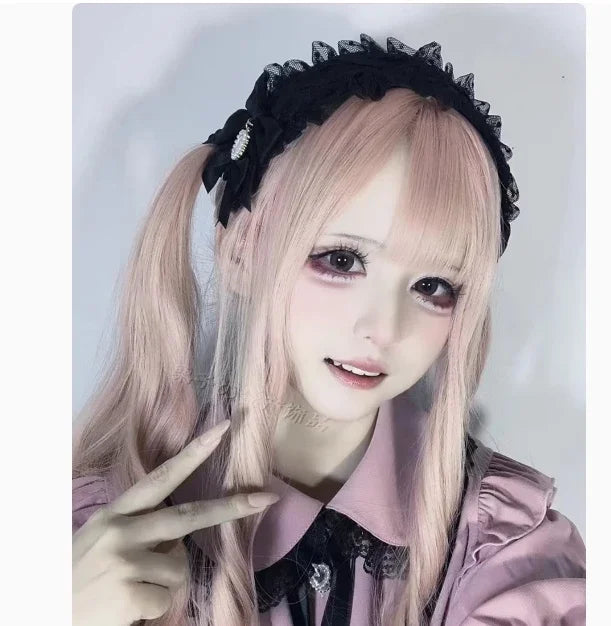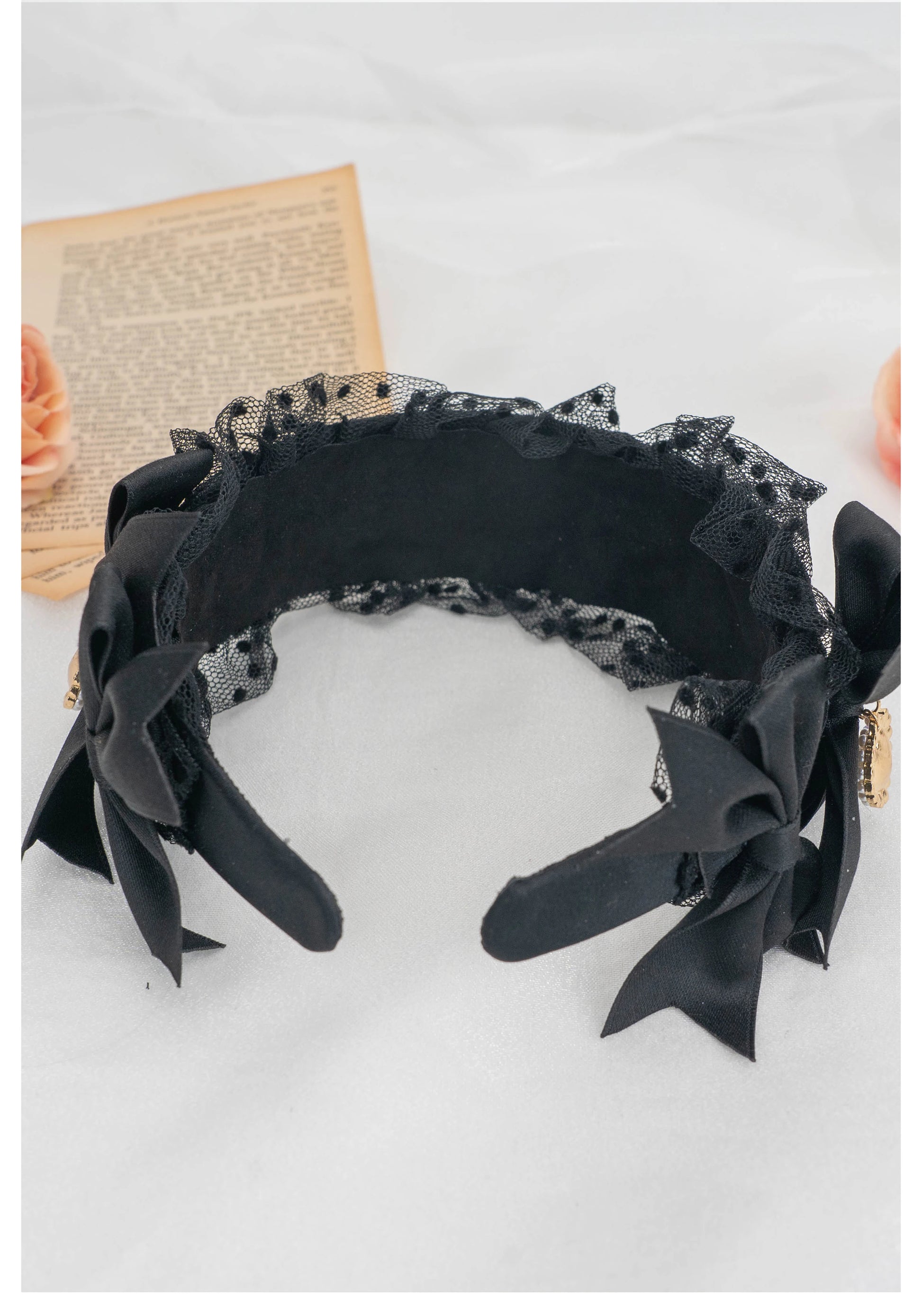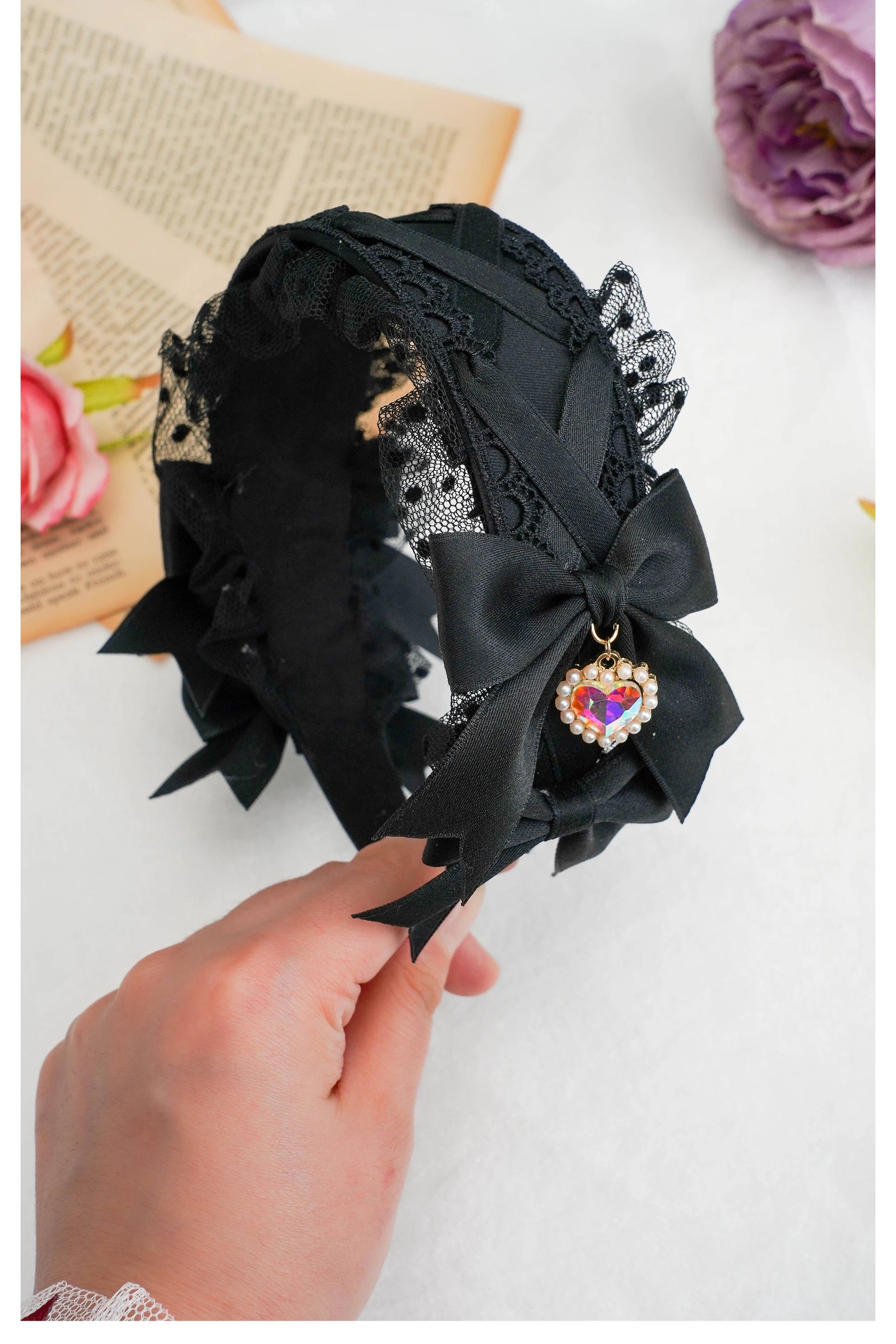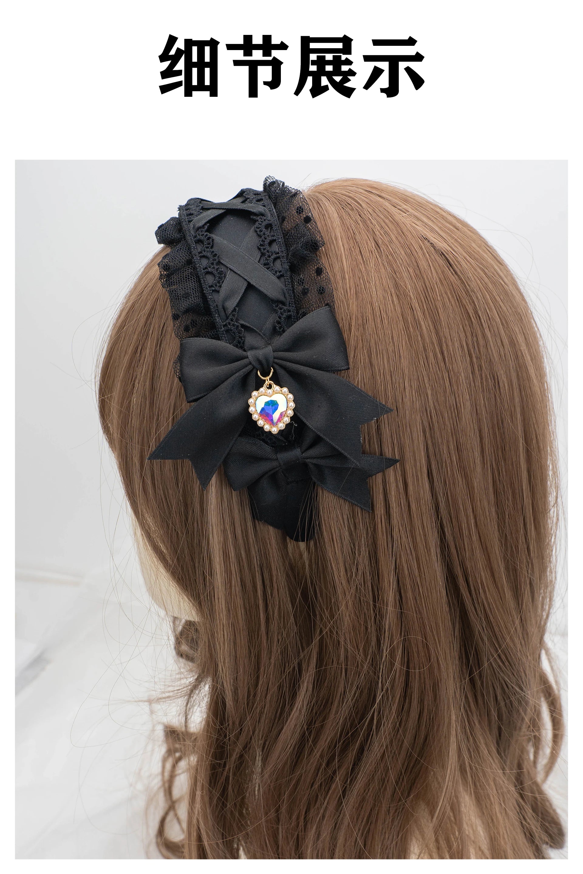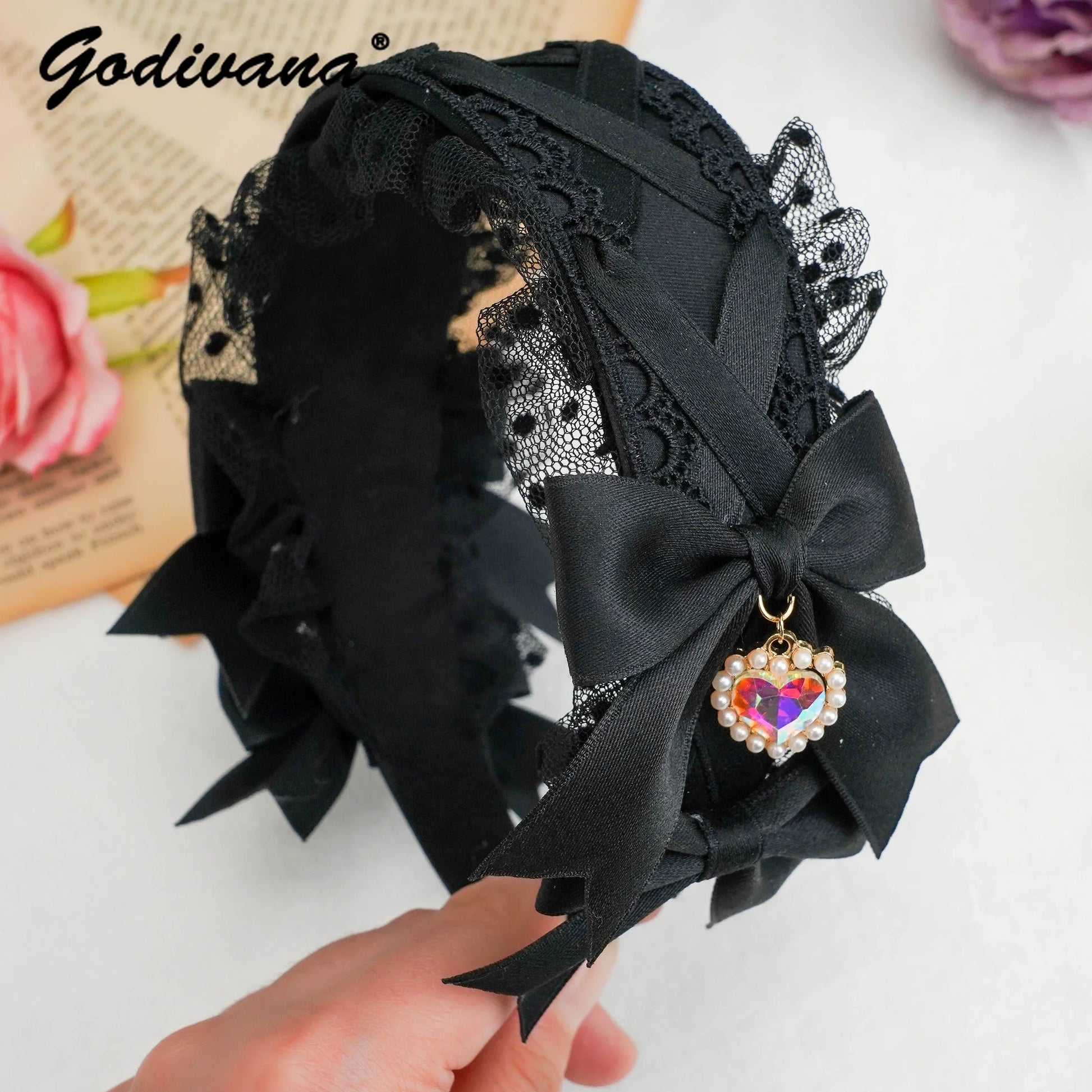 Lolita Hairband Lace Bow New Headwear Sweet Heart Shape Rhinestone Pendant Headband Japanese Style Hair Accessories for Women