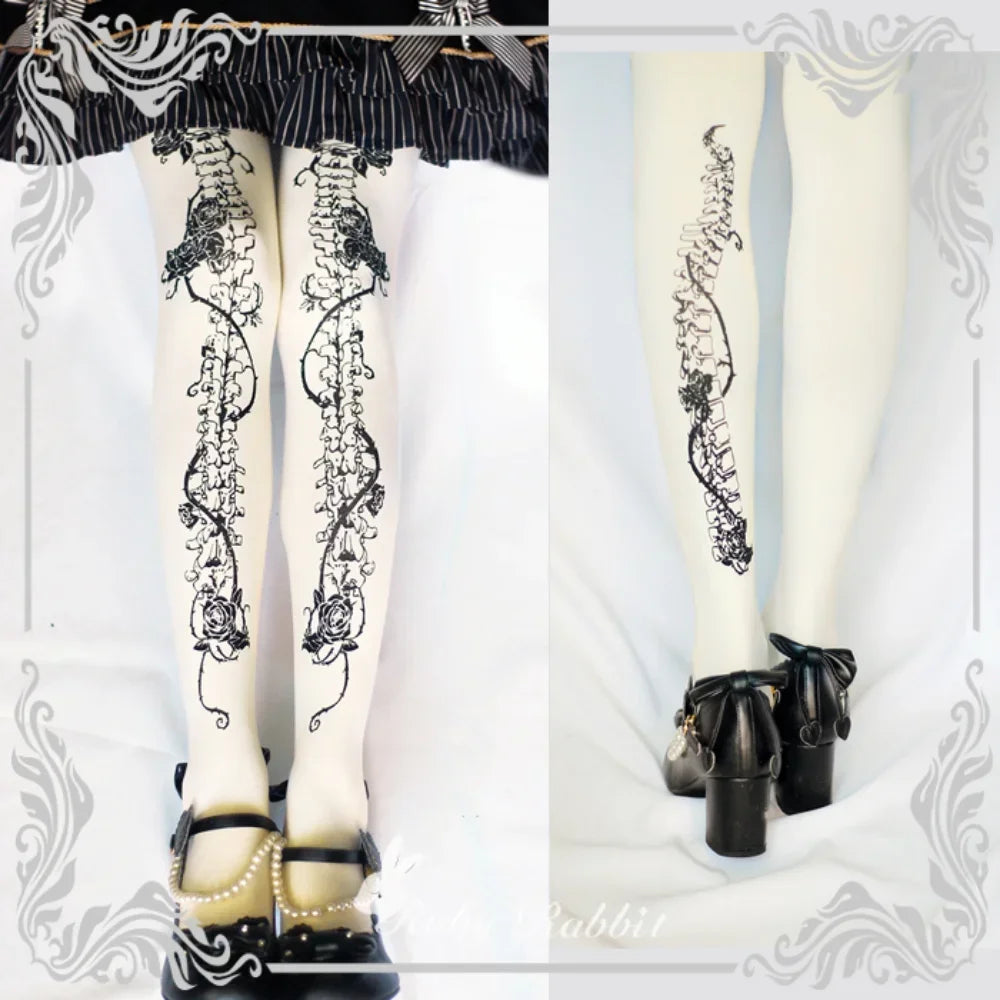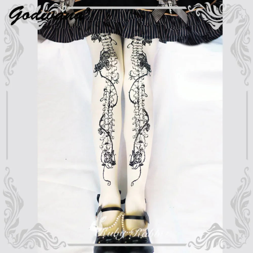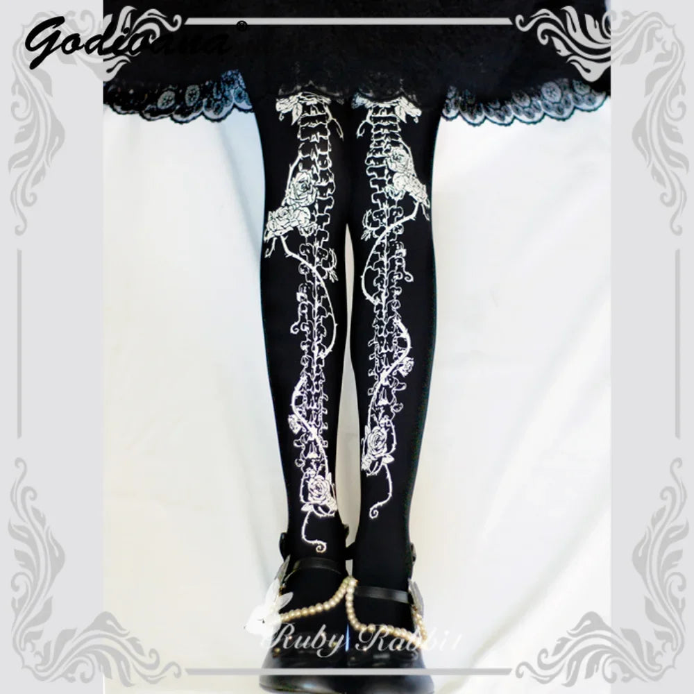 Lolita Printed Pantyhose Stockings Female White Halloween Cosplay Tights Pantyhose Spring Women's Gothic Bottoms Sexy Long Socks