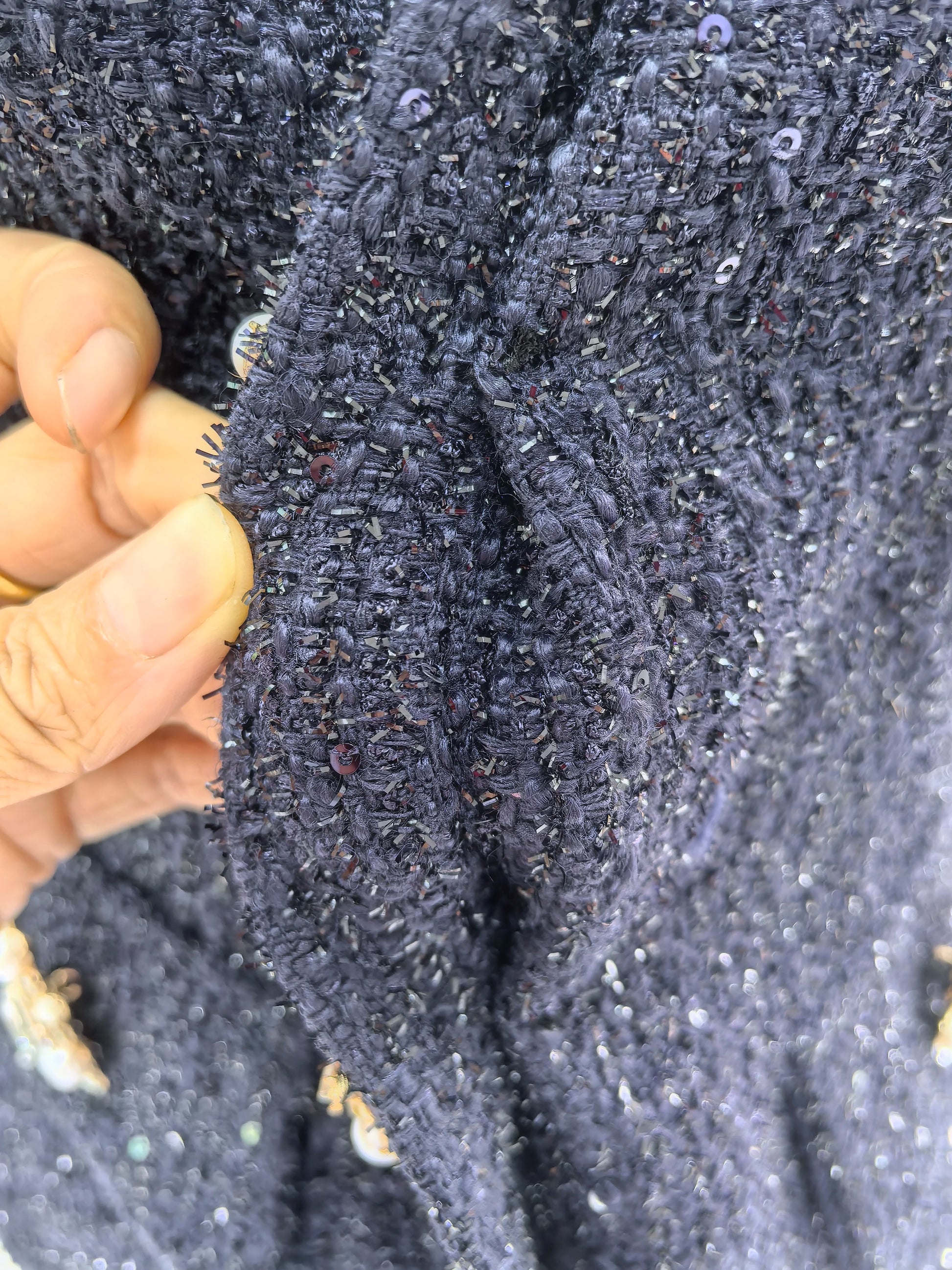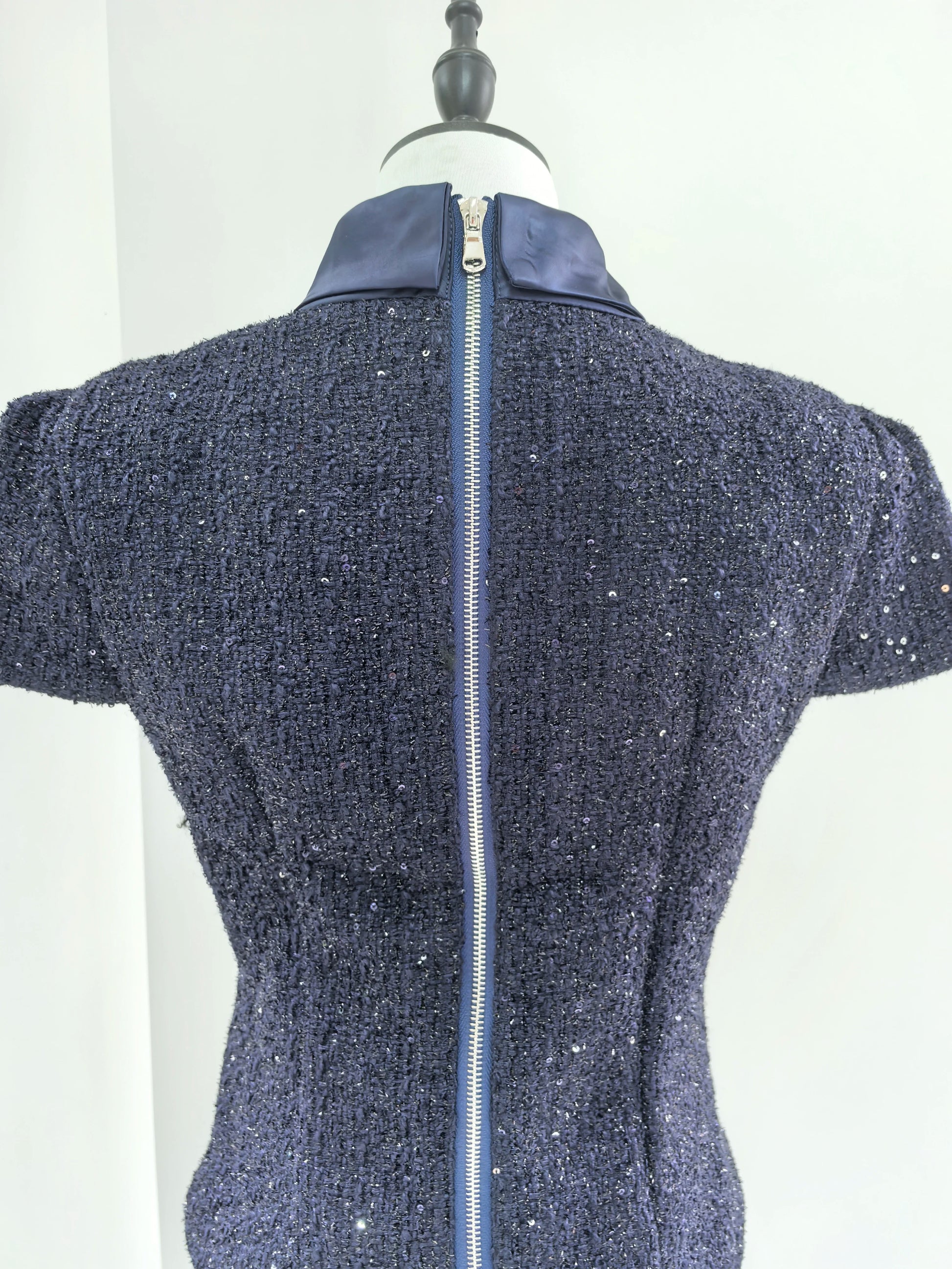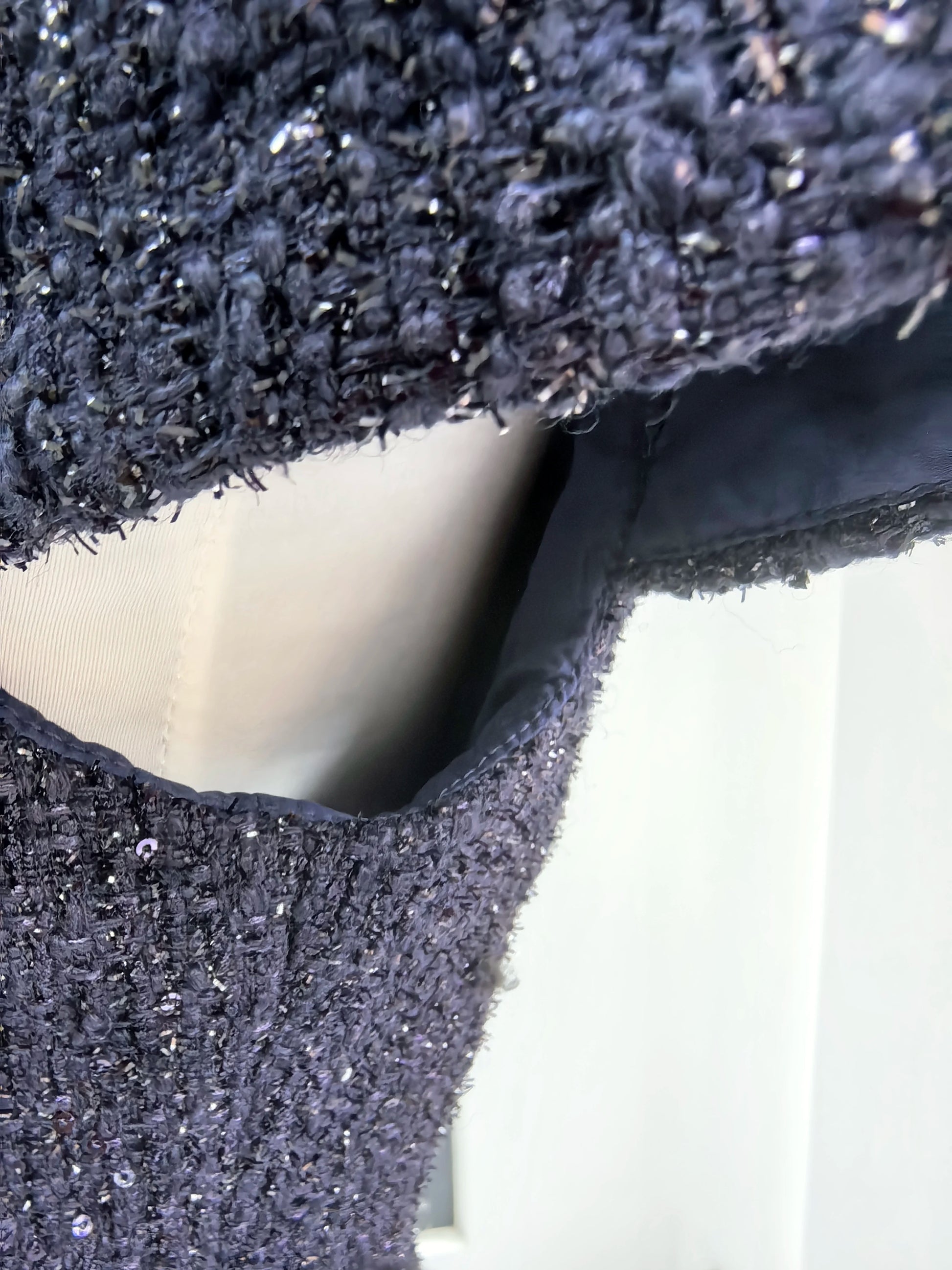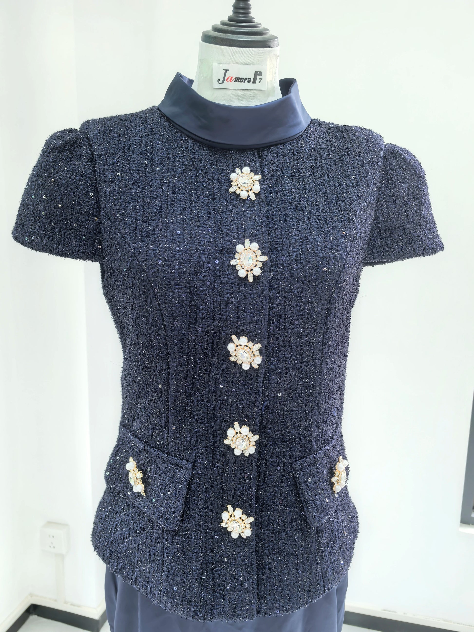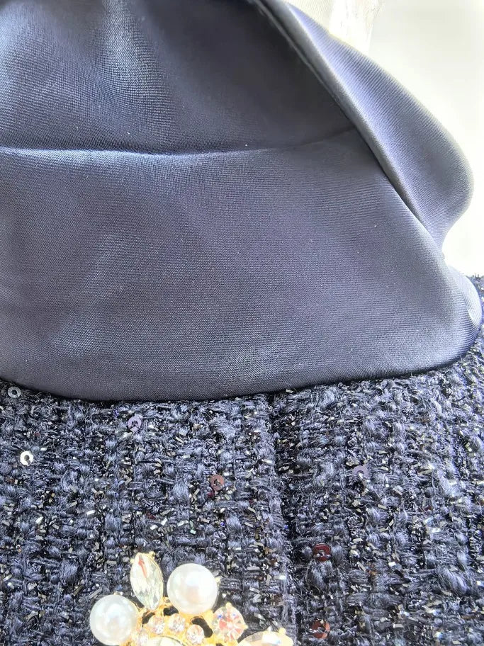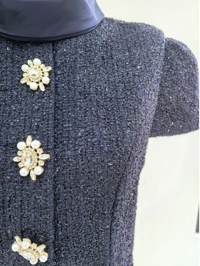 Maxi Formal Luxury Evening Dresses Women Summer Autumn Single Breasted Crystal Satin Tweed Long Dress Blue Party Dinner Vestidos