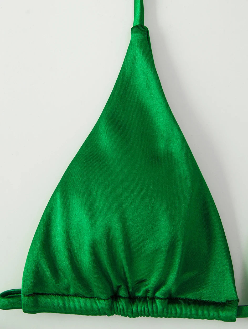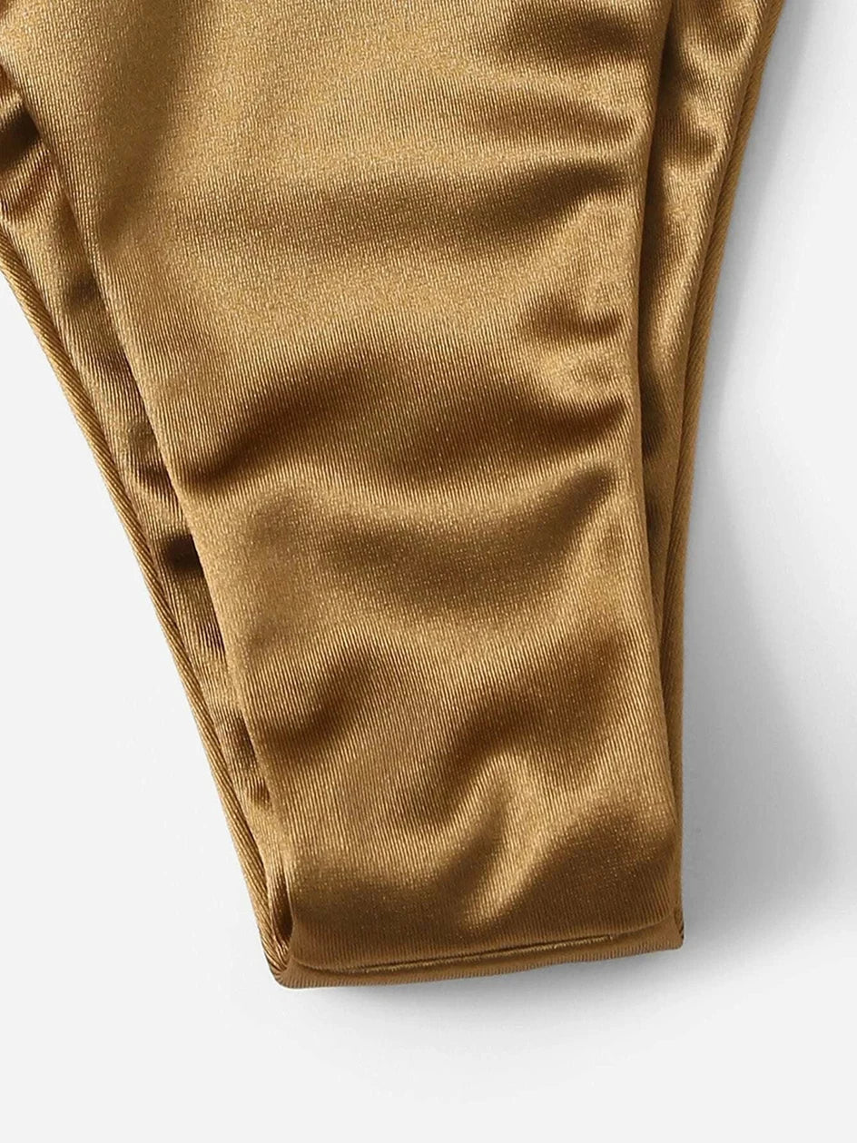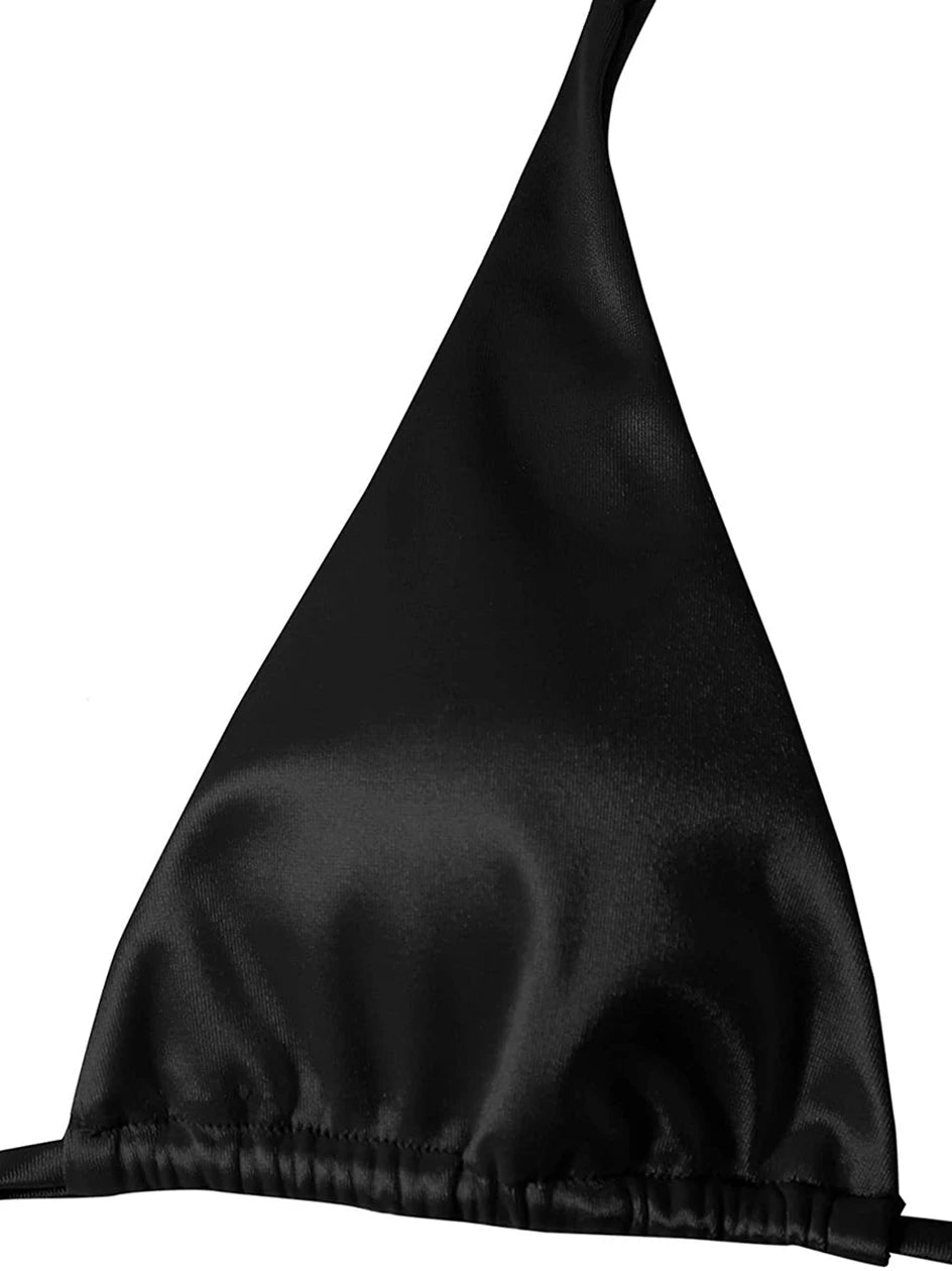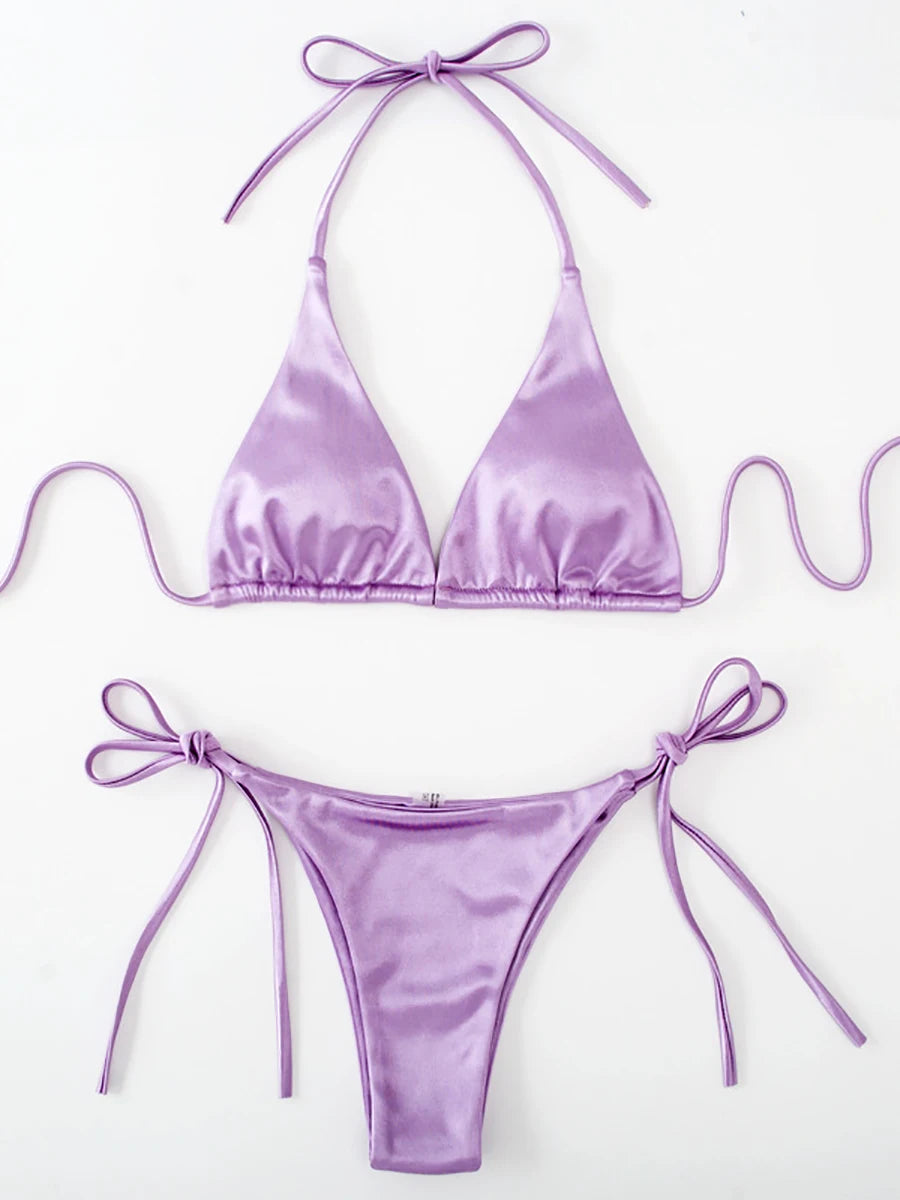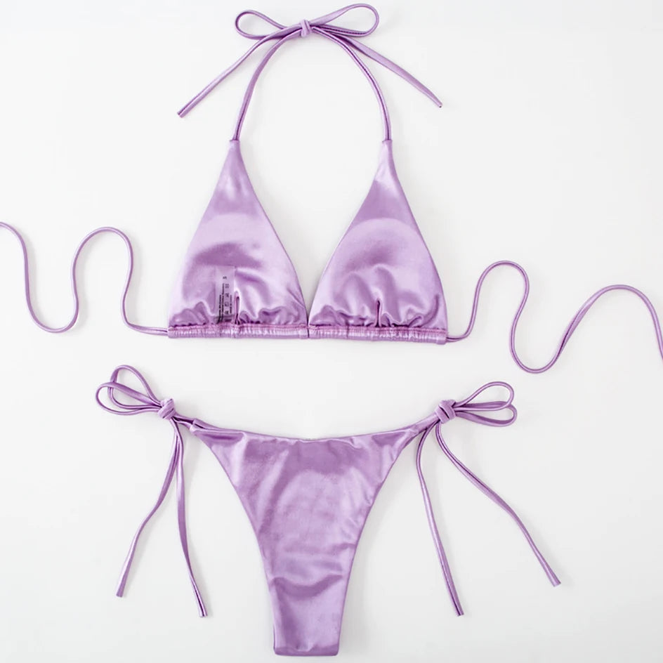 Metallic Halter Triangle Bikini 2023 Swimsuit Women Swimwear Female Bathing Suits Brazilian Thong Micro Bikinis Set Beach Wear