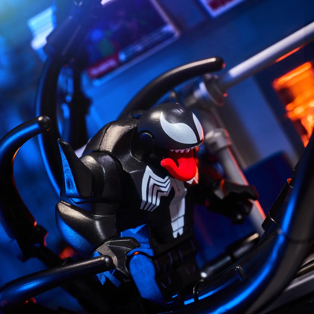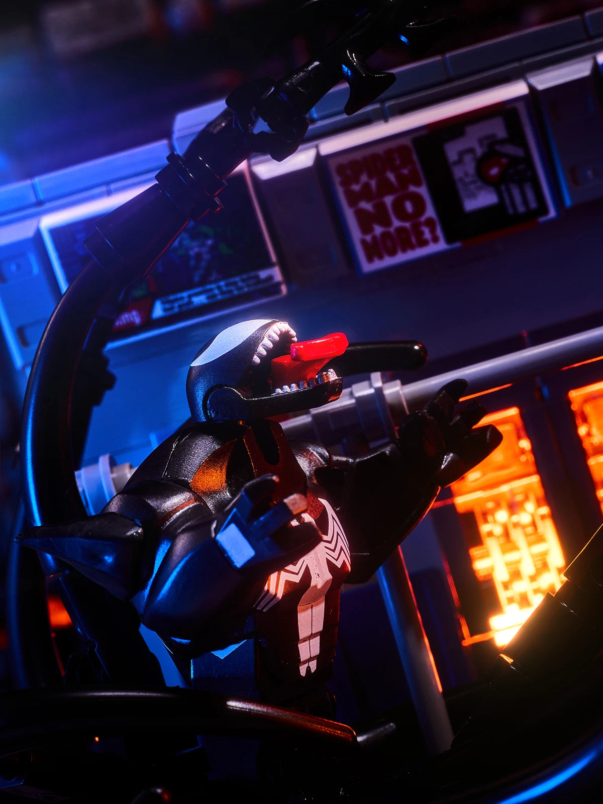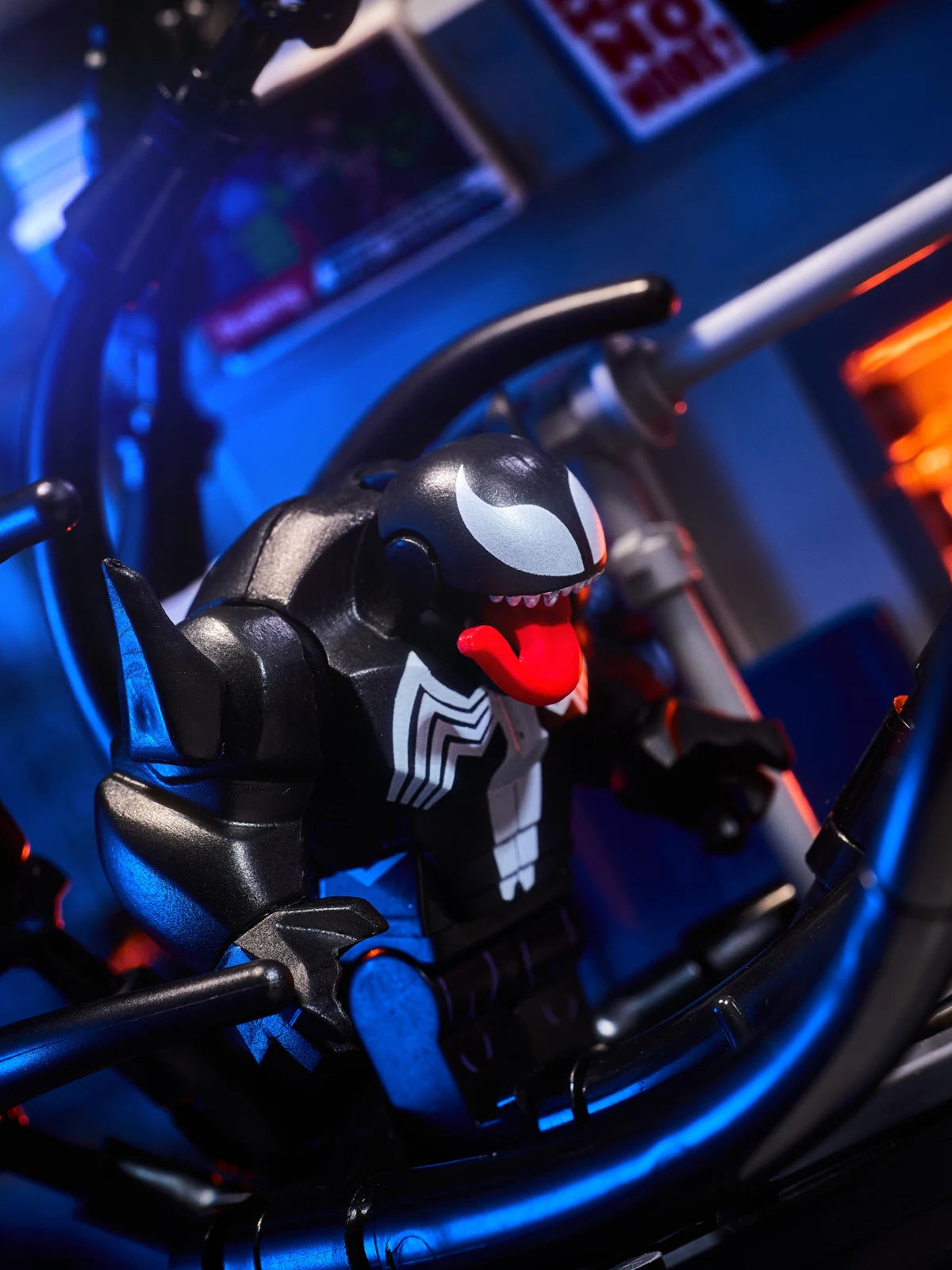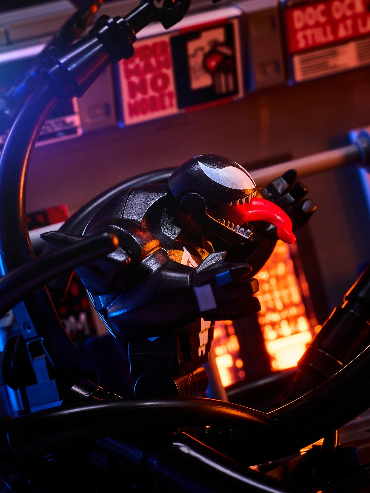 MOC scene: Marvel Venom vs. Spider-Man in the subway. Spider-Man's assembled toy bricks. Christmas gift for a boy and a girl.