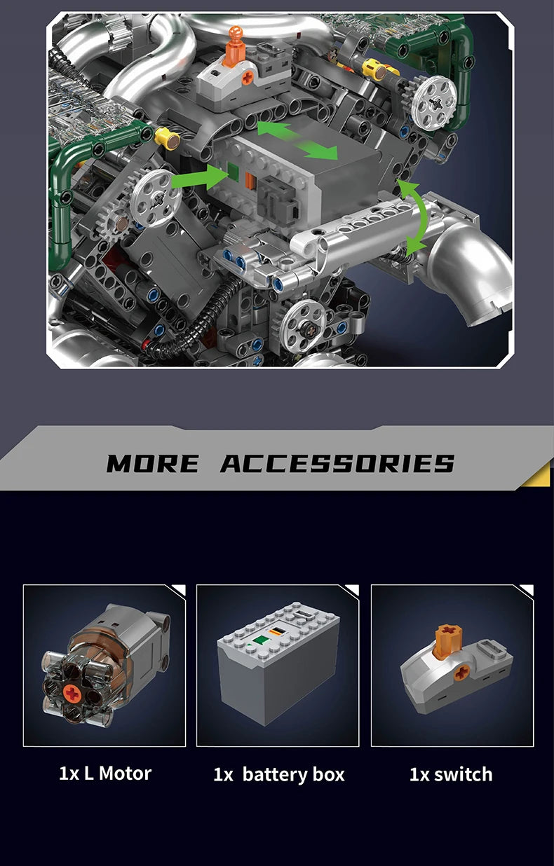 Mould King 10182 Technical Car Engine Toys The Motorized V8 Tank Engine Building Block Assembly Engine Brick Kids Christmas Gift