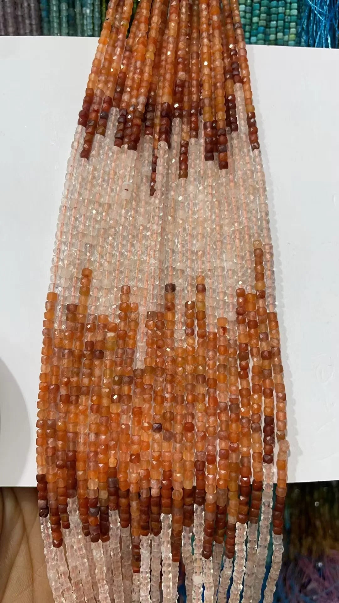 Natural Rainbow Tourmaline Cube Faceted 2.5X2.5mm Length38.5cm