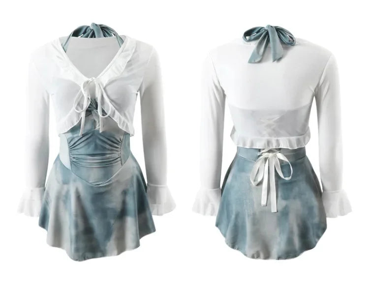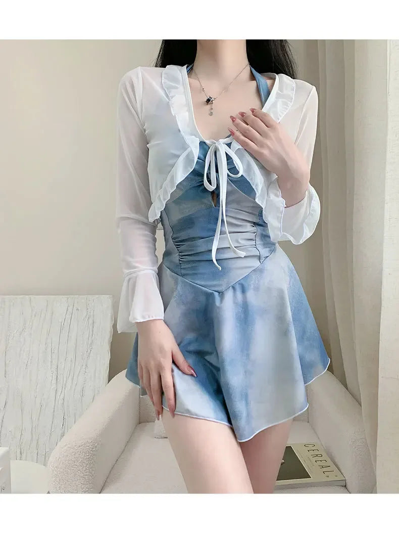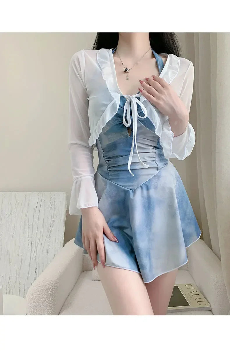 New Tenderness Sweet Cute Blue Halter Bikinis Swimsuit Aesthetics Fashions Slim Onsen Conservative Swimwear Bikinis Set