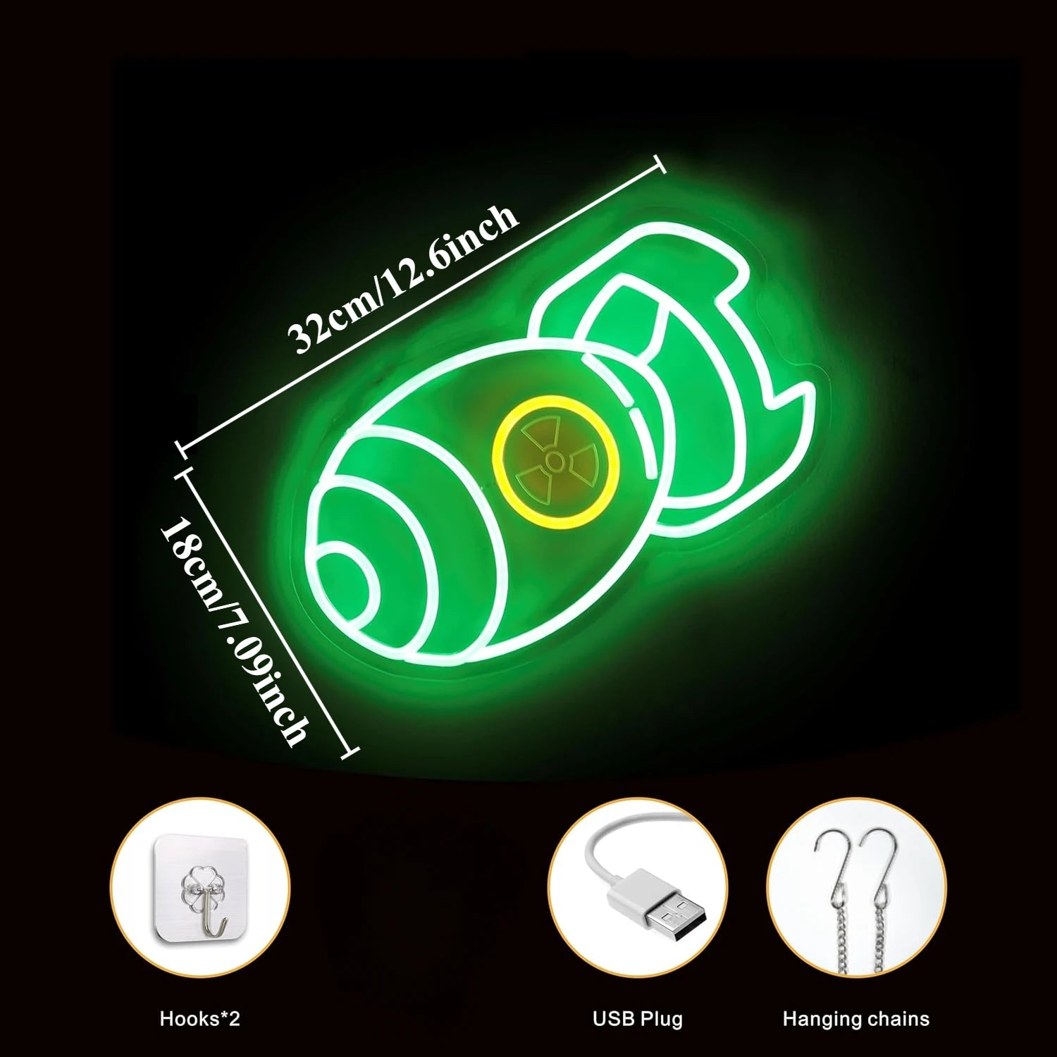 Nuclear Bomb Neon Sign LED Neon Light Sign for Game Room Man Cave Bedroom Bar Decor Birthday Christmas Gift for Gamer Him Boys