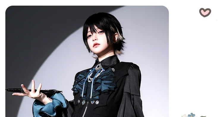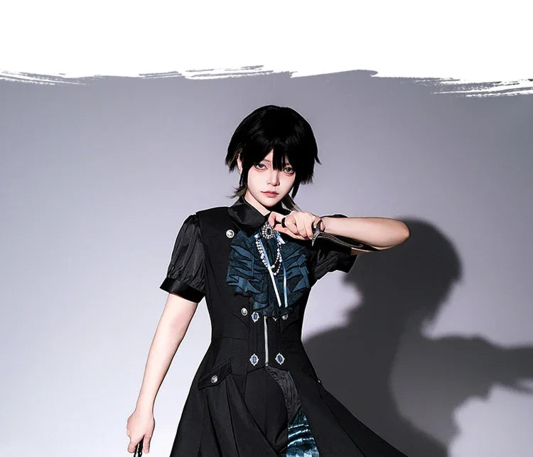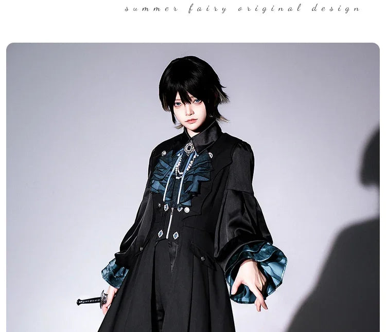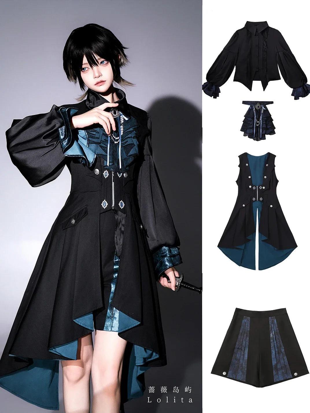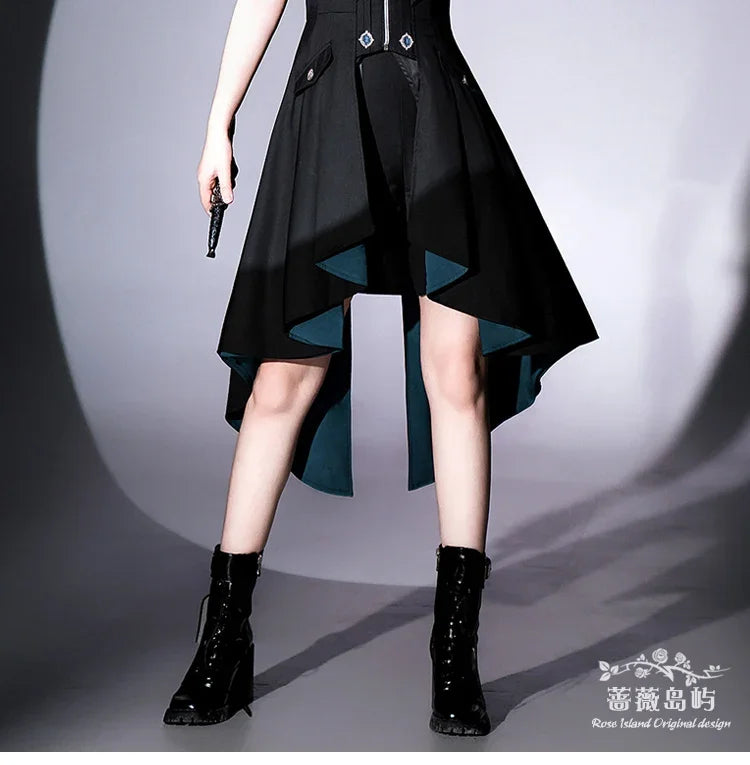 Original Dark Goth Prince Clothing Set New Spring Summer Women's Cool Black Shirt Irregular Vest Shorts 3 Piece Suit Outfits