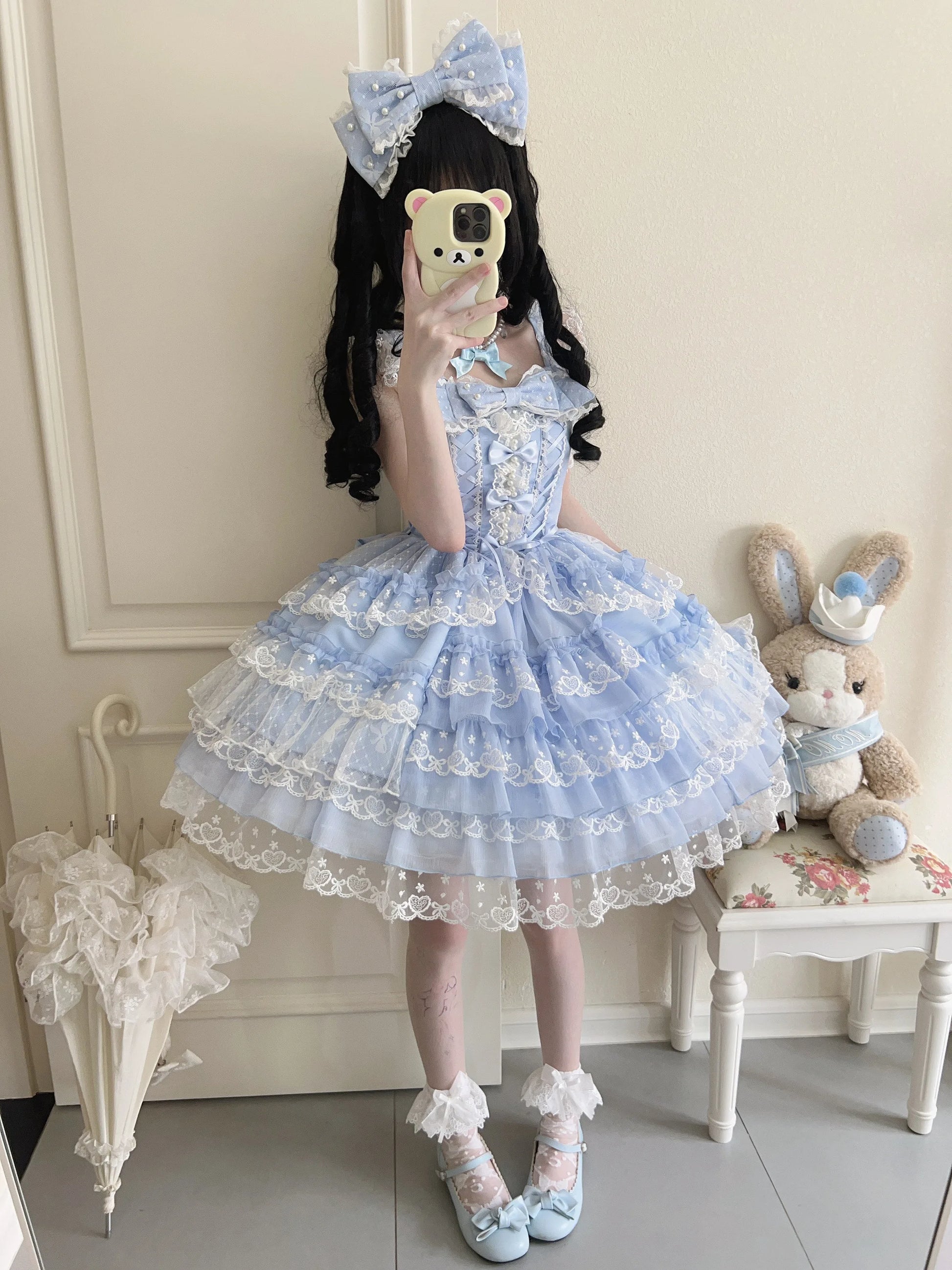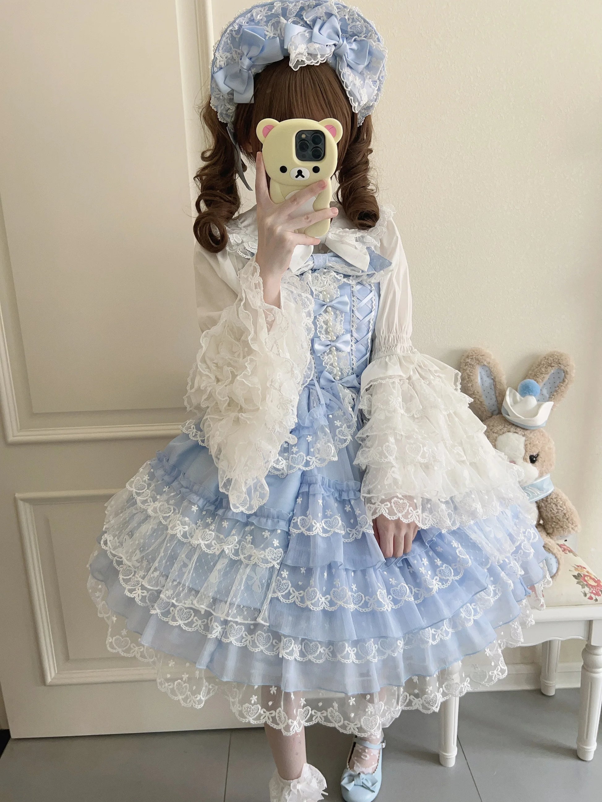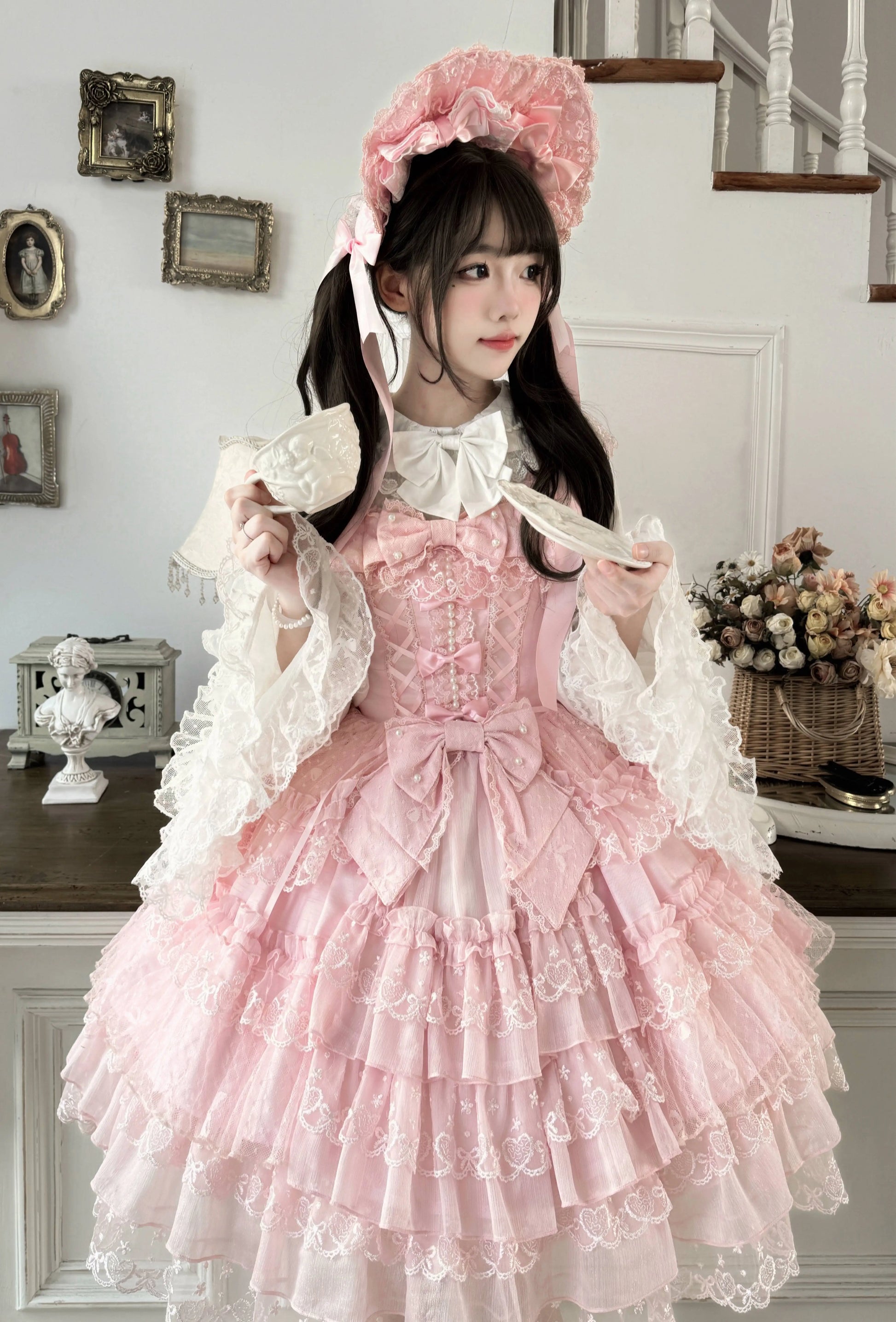 Original Design Lolita Jsk Suspender Dress Sweet Girl Women's Long Sleeve Inner Shirt Cute Princess Sling Cake Dress with Cape