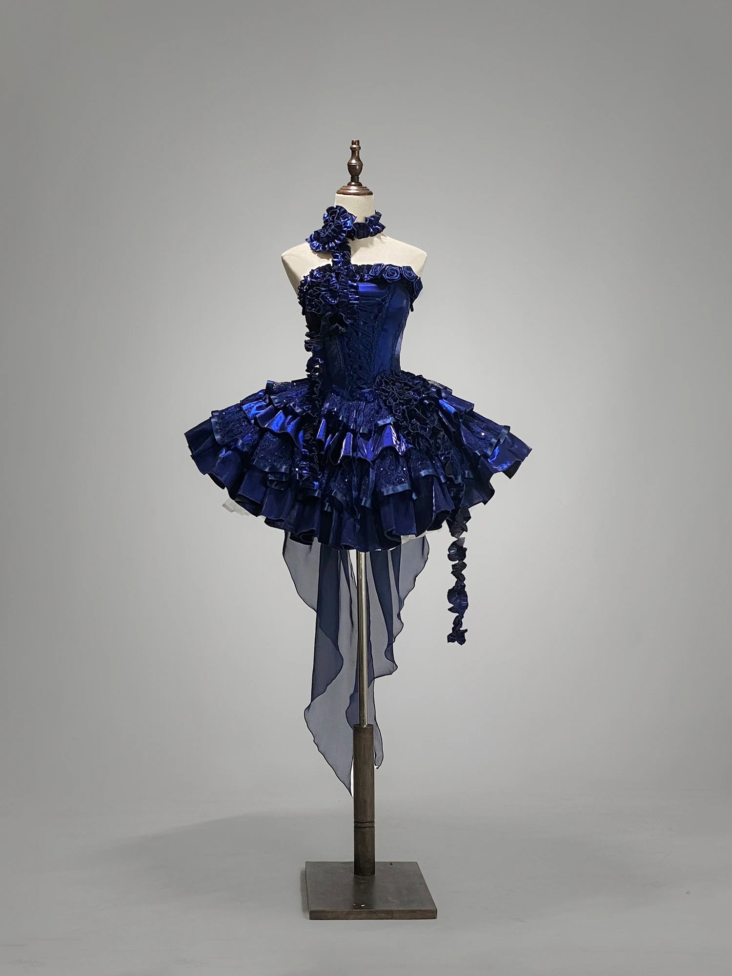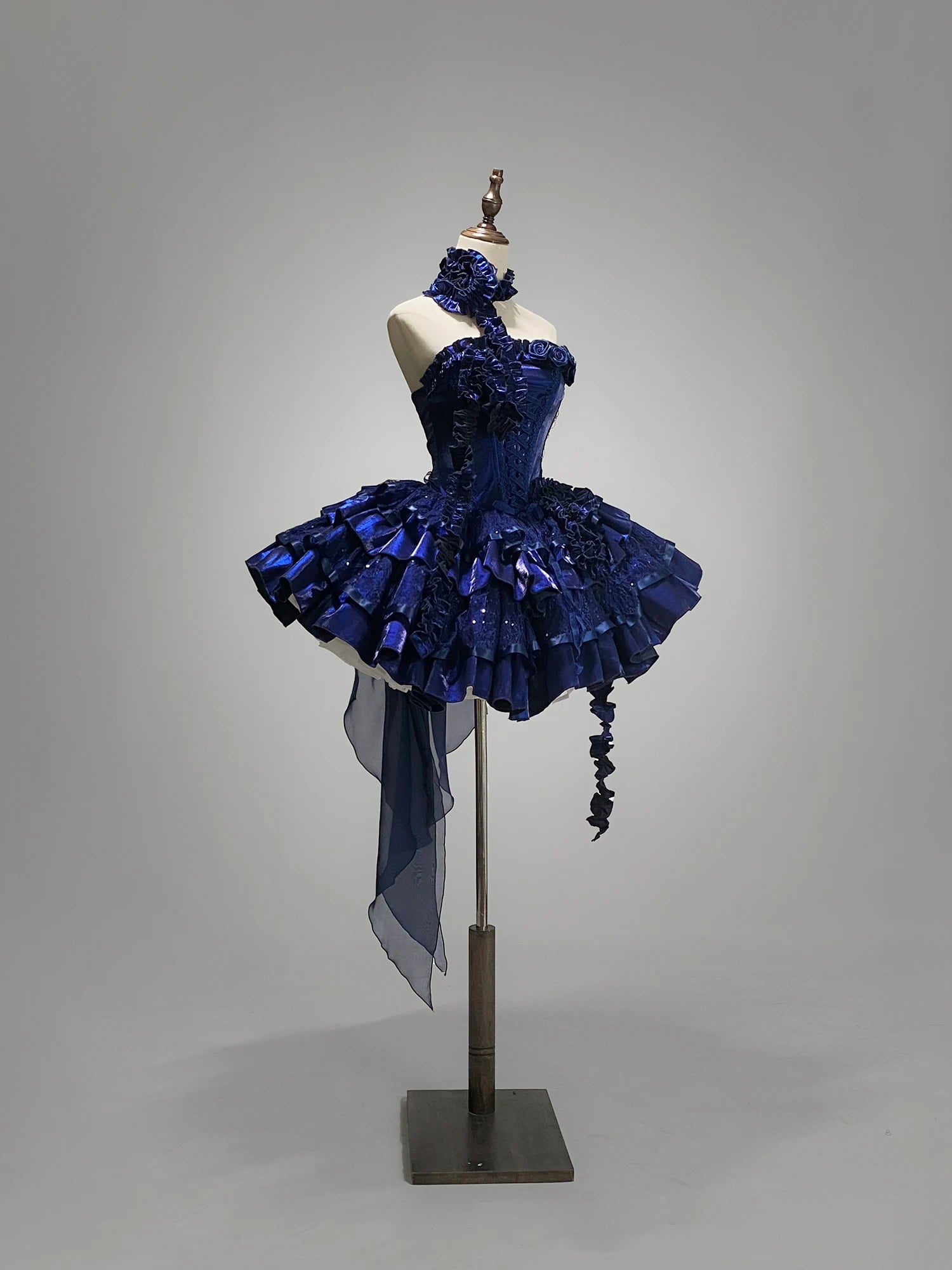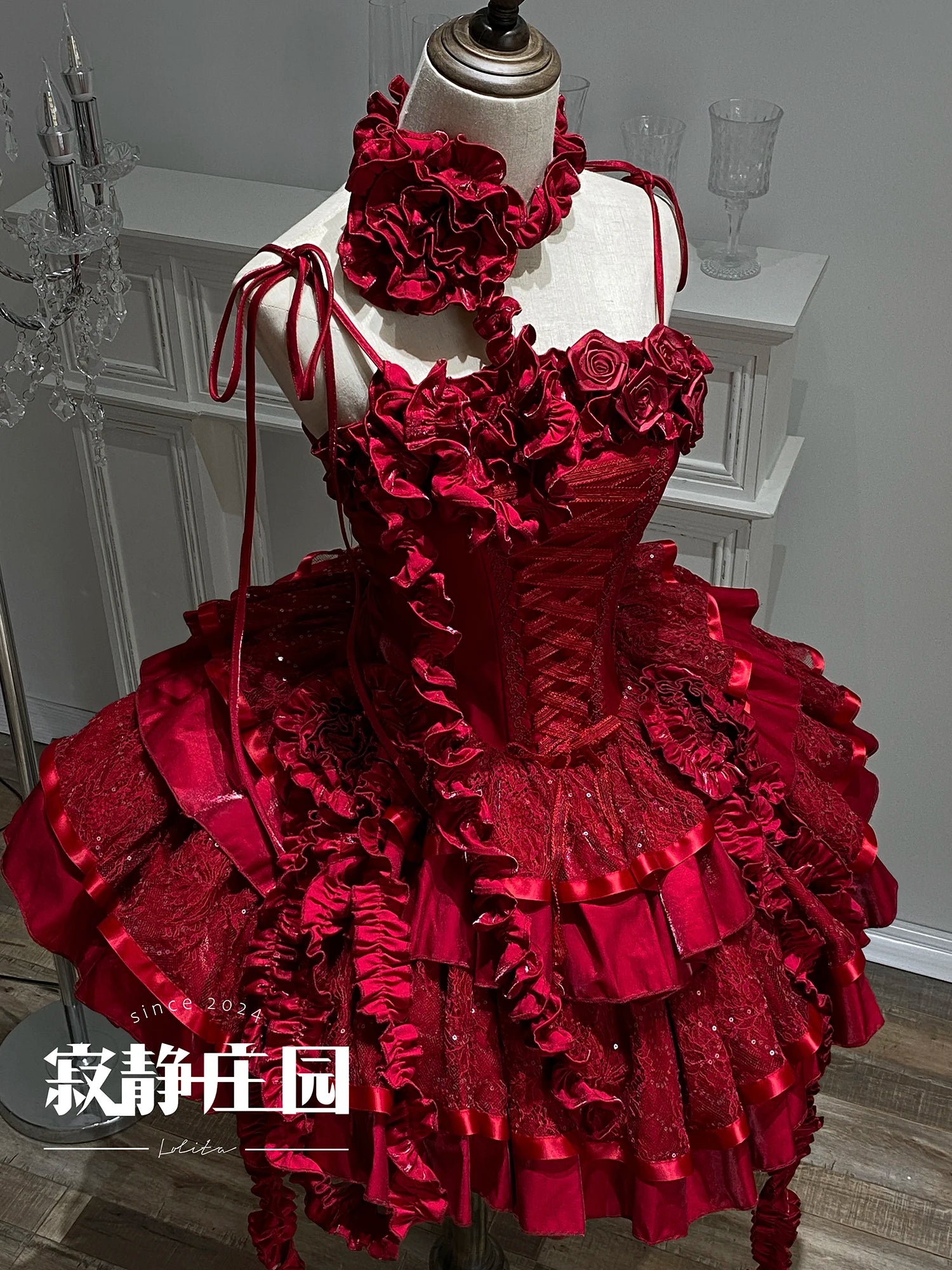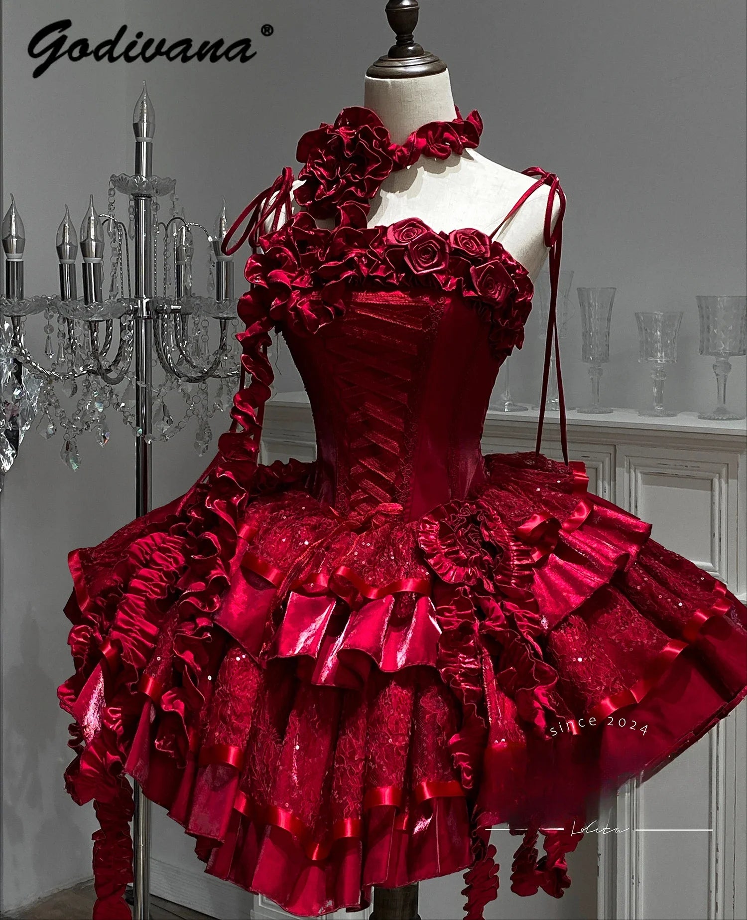 Original Lolita Dress New Christmas New Year Goth Red Fish Bone Jsk Dress Halloween Cosplay Dark Blue Slim Sling Short Dresses