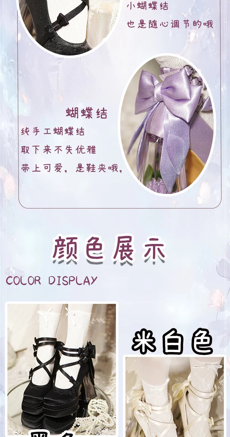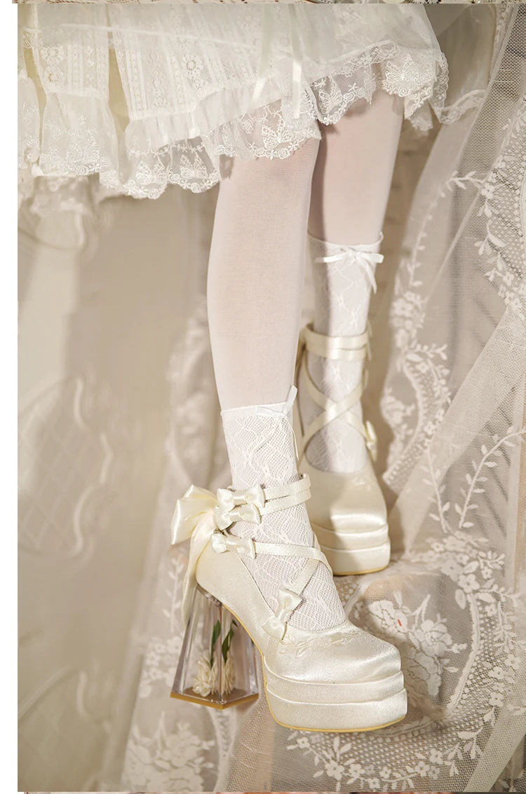 Original Lolita High Heels Elegant Ladies Camellia Embroidery Sweet Bow Satin Mary Jane Shoes Cos Shoes Women's Chunky Heels